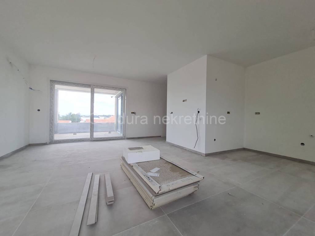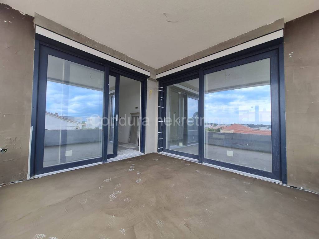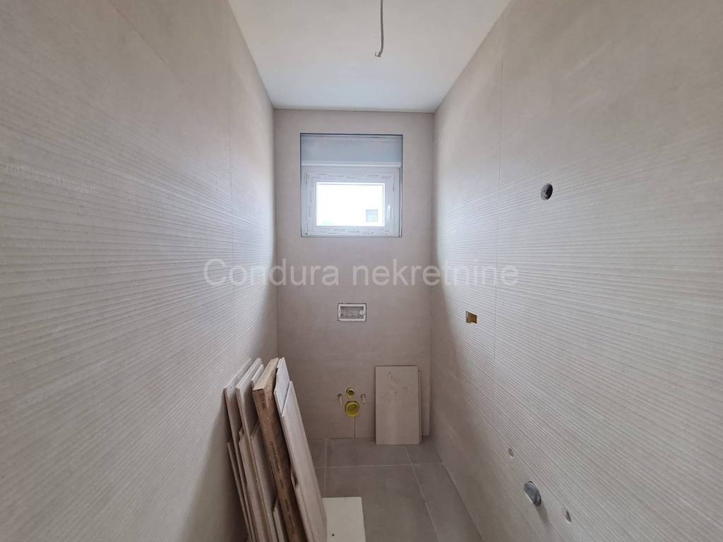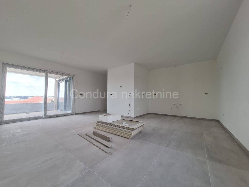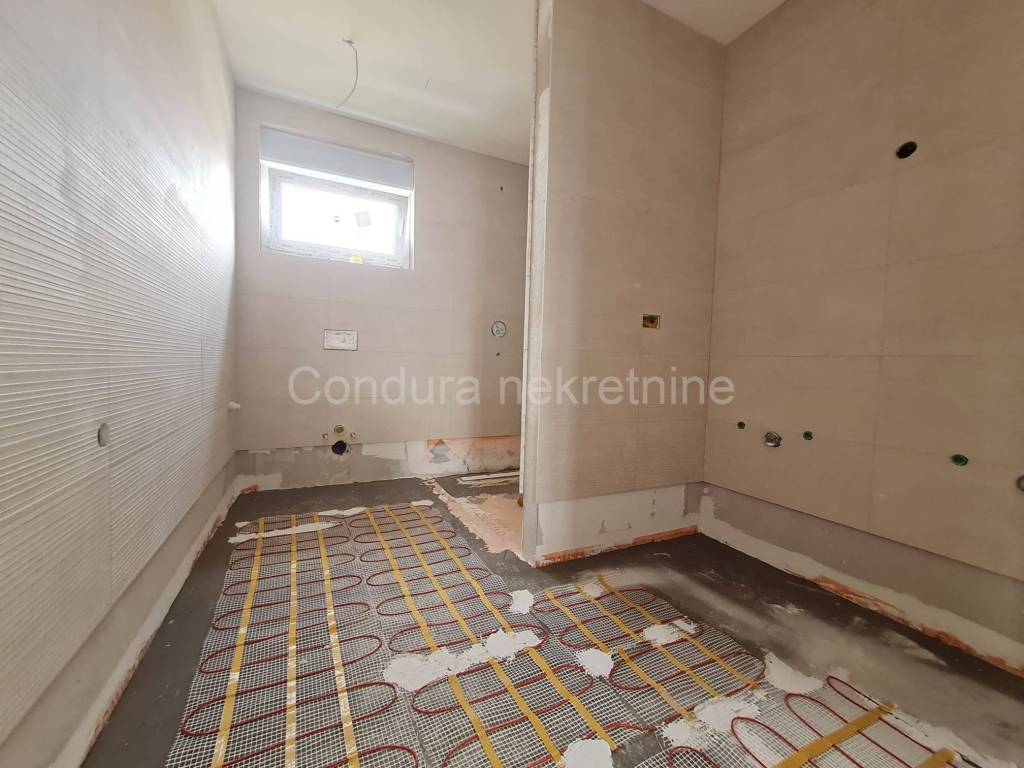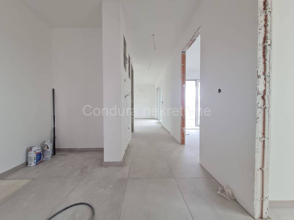 Each apartmentspreads over the entirestorey and has an area of 95 m2. They consist o: hallway, bathroom, toilet, two bedrooms, laundry room, living room with kitchen and a large covered terrace oriented to the south side towards the sea. The apartment on the ground floor and on the first floor will have a part of the garden (approx. 30 m2), while the one on the second floor will have a large roof terrace (approx. 95 m2) with a beautiful open view of the sea, the islands and the surrounding area. Each apartment will also have one parking space (possibility of agreement on additional one).