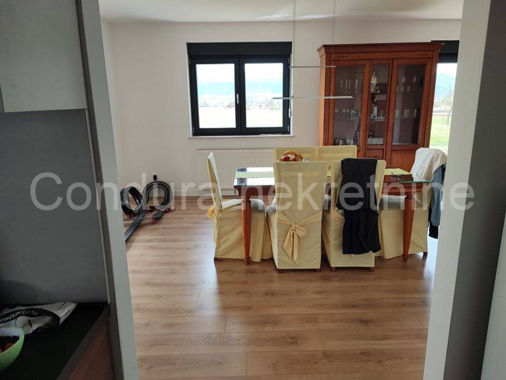 Prvi kat kuće trenutno se nalazi u fazi uređenja i sastoji se od četiri spavaće sobe, garderobe, kupaonice i toaleta.