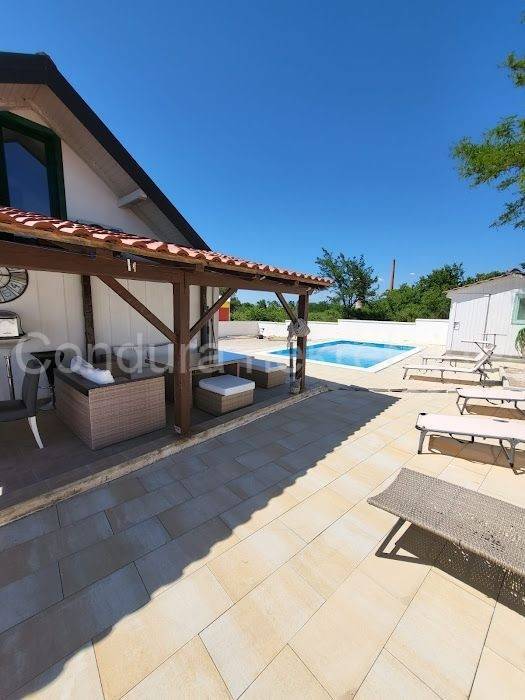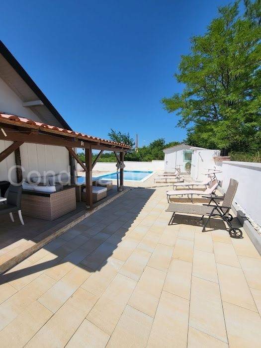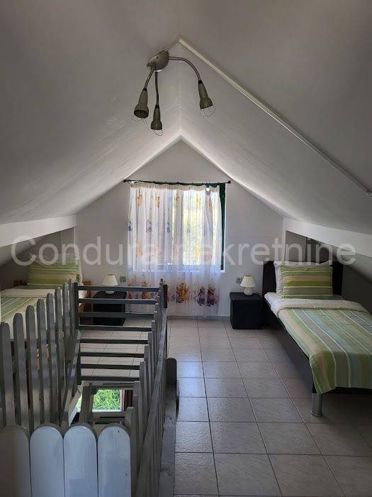 The large garden features a 4m x 7m saltwater swimming pool, and there is also a parking space and storage rooms. There is also a covered terrace next to the house in the yard.The house is ideal for a family vacation or as an investment opportunity for rent in tourism.