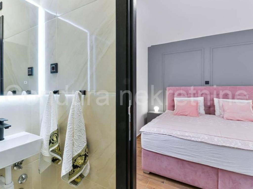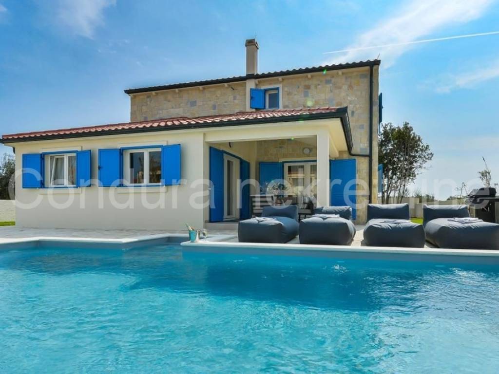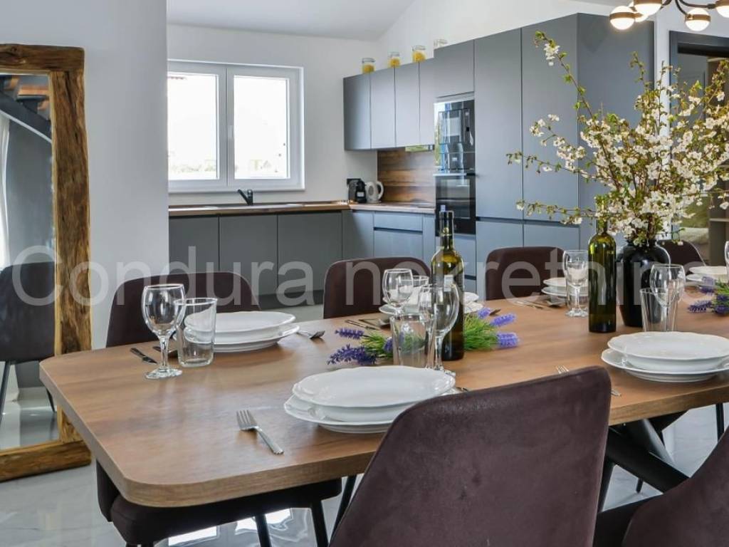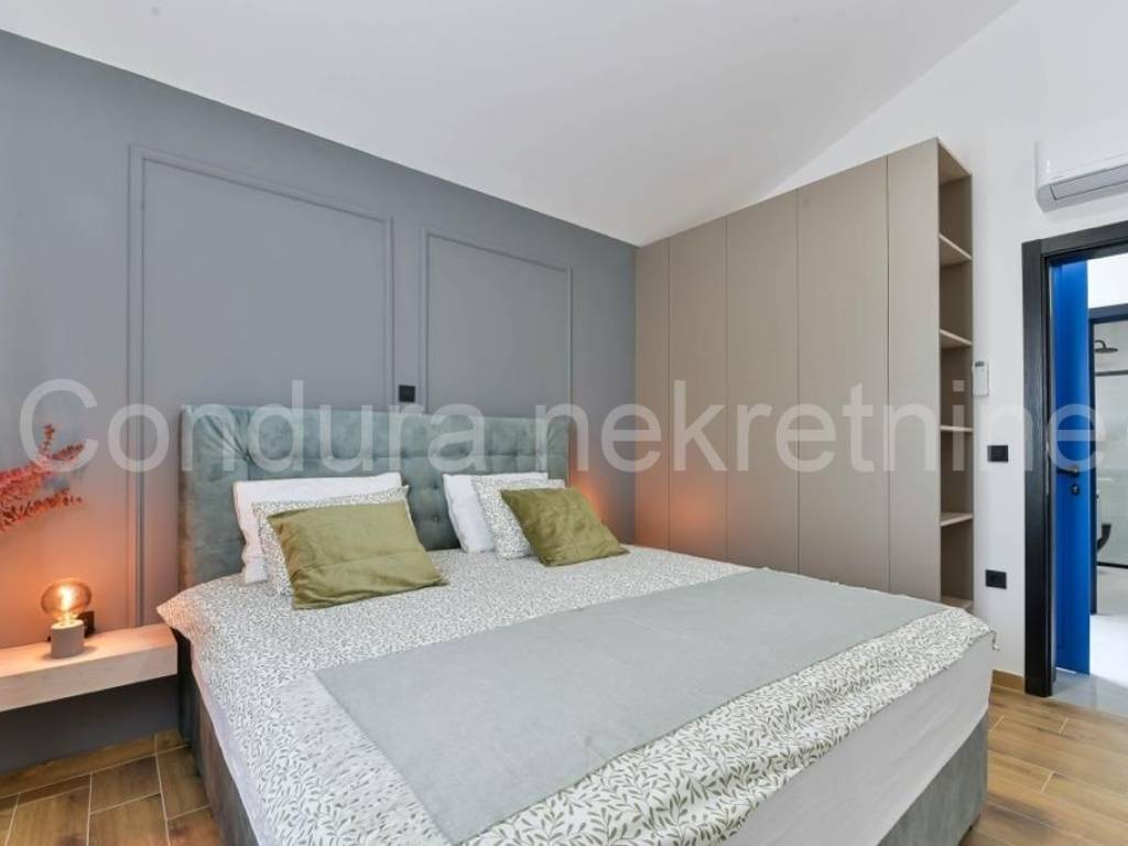 For sale is a beautiful decorated holiday home built in Dalmatian style, which extends over 2 floors. On the ground floor there is an open space living-dining area with kitchen, daylight bathroom and one bedroom. The living area with open kitchen looks directly onto the sun-protected terrace and beautifully landscaped garden, which includes a pool, sun deck and green area. The internal staircase leads to the upper floor, where there are also 2 bedrooms, a hallway and a bathroom.