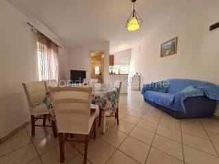 It consists of a ground floor and one upper floor with one apartment on each floor. Each apartment has two bedrooms, a kitchen with a dining room, a bathroom and a covered terrace. The floors are connected by an external staircase and each apartment has a separate entrance.