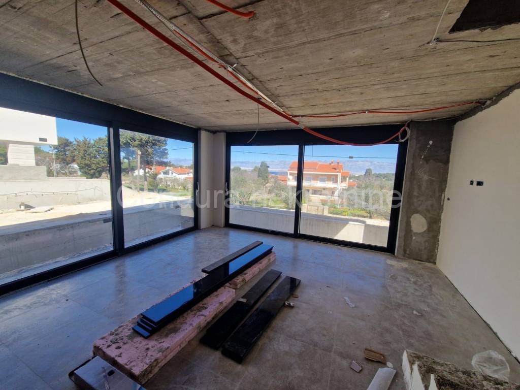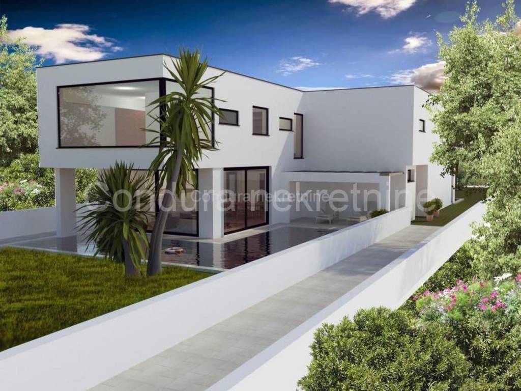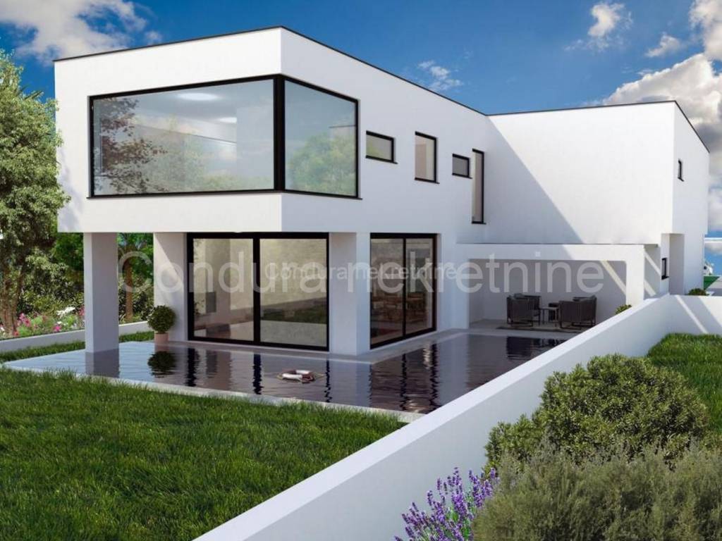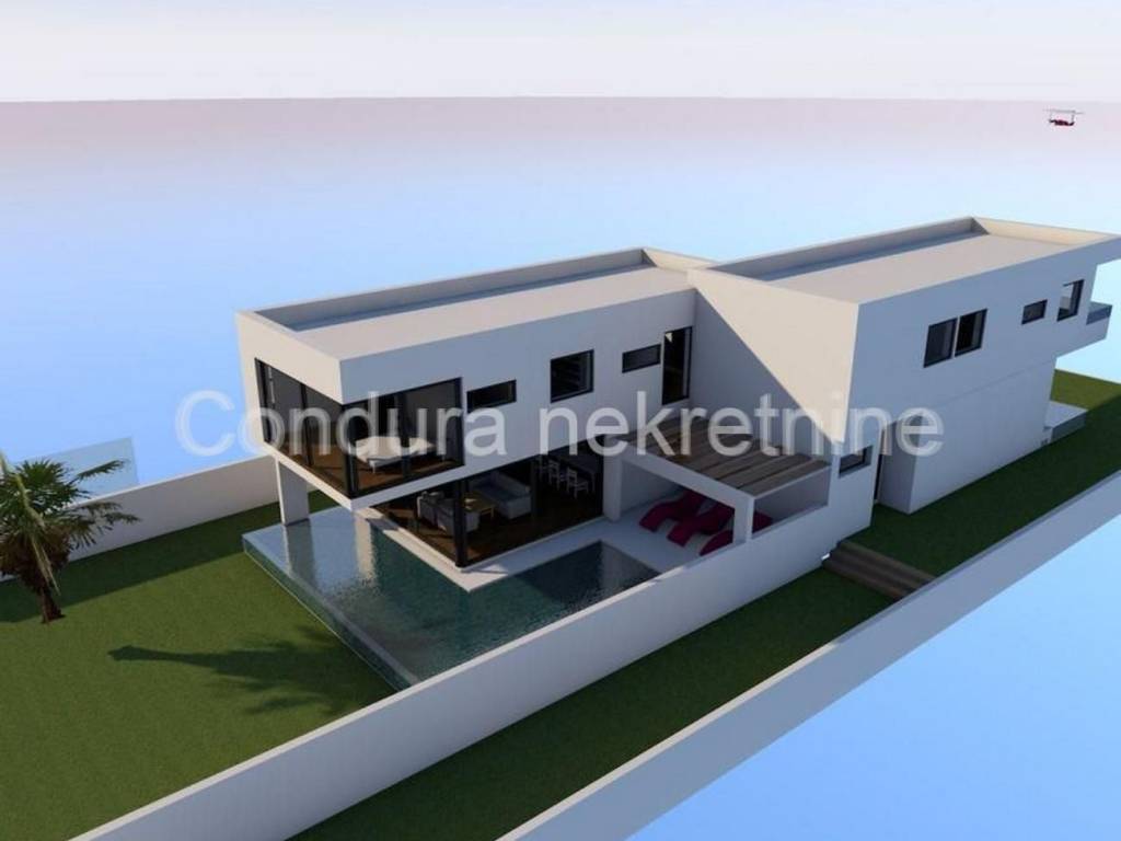 A modern luxury villa with a swimming pool is for sale in a quiet area of the island of Vir. The property consists of two residential units, each with its own swimming pool and a fenced-in yard. Each apartment has a net area of 130 m2.