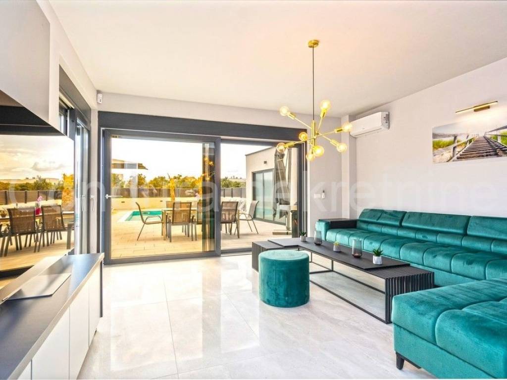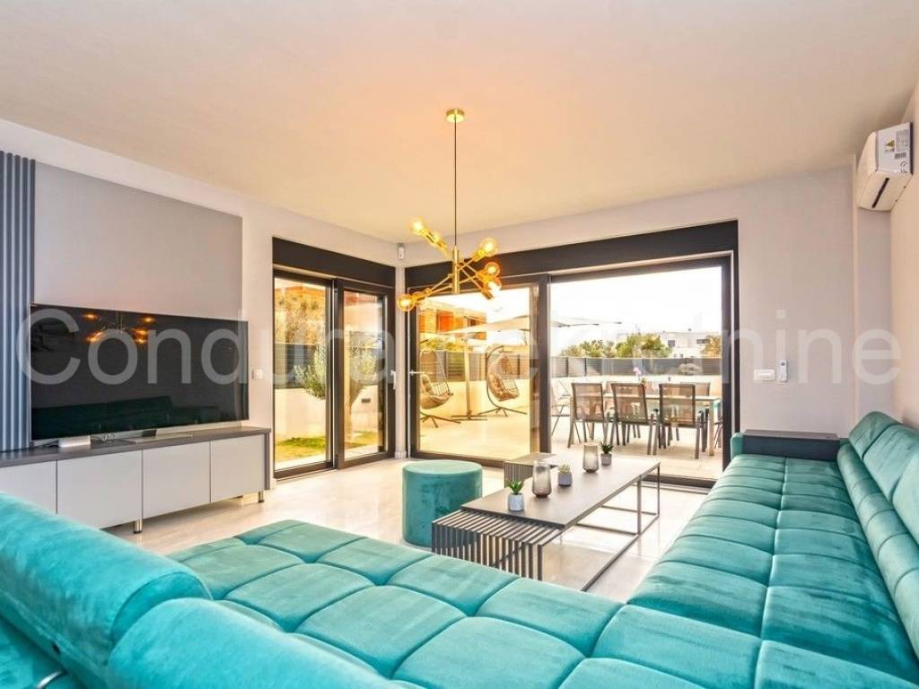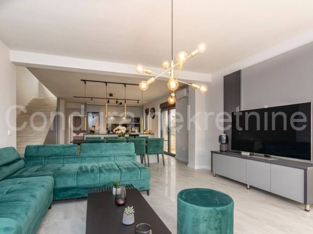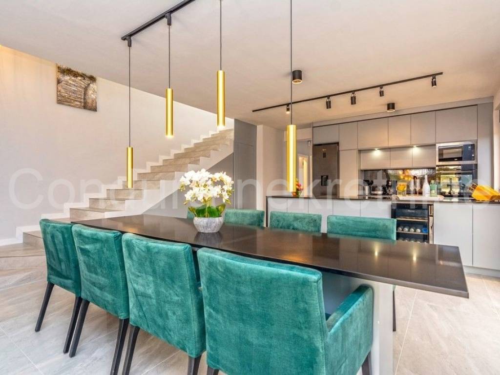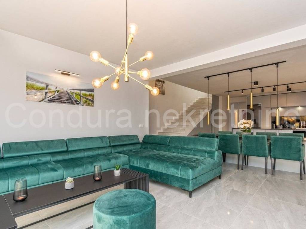 The house is fully furnished with first-class custom-made furniture. High quality floor coverings - ceramic tiles were used in the decoration, PVC joinery with electric shutters was installed. Air conditioning for heating and cooling in the living room and in each bedroom, and the bathrooms have underfloor heating.