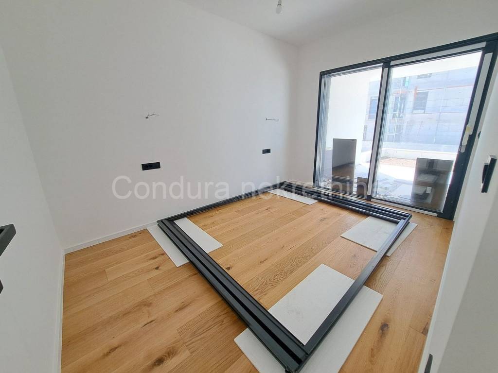 S1 - total net usable area of 76.41 m2 consists of entrance, two bedrooms, bathroom, living room with kitchen and dining room and a spacious covered terrace (26 m2). The apartment also has a garden (approx. 29 m2) and two parking spaces. Price: 360 000 EUR S2 - total net useful area of 77.72 m2 consists of an entrance hall, two bedrooms, two bathrooms, living room with kitchen and dining room and a large loggia (35 m2). The apartment also includes part of the garden (approx. 27 m2) and two parking spaces. Price: 310 880 EUR S3 - SOLD!