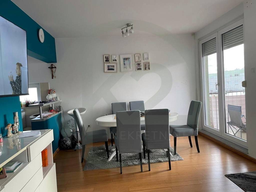 Stan se sastoji od ulaza, dnevni boravak, blagovaona, loggia, kuhinja, 2 kupaone sa WC-om, hodnik sa ugradbenim ormarima, 3 spavaće sobe, balkon.