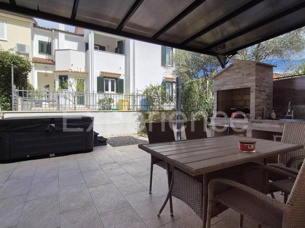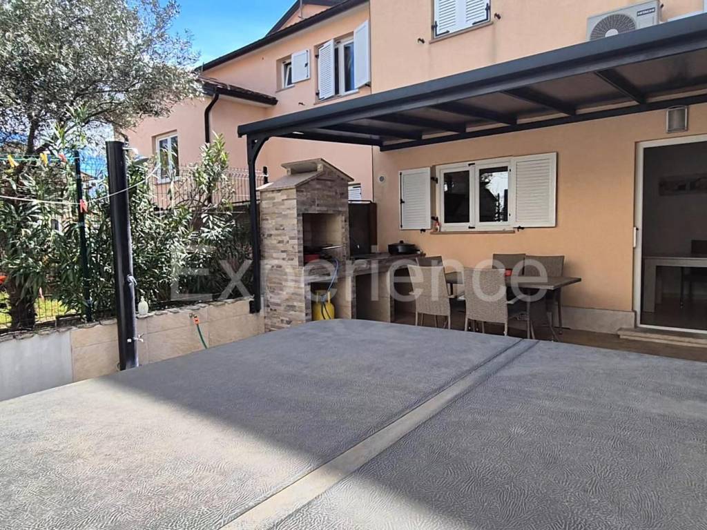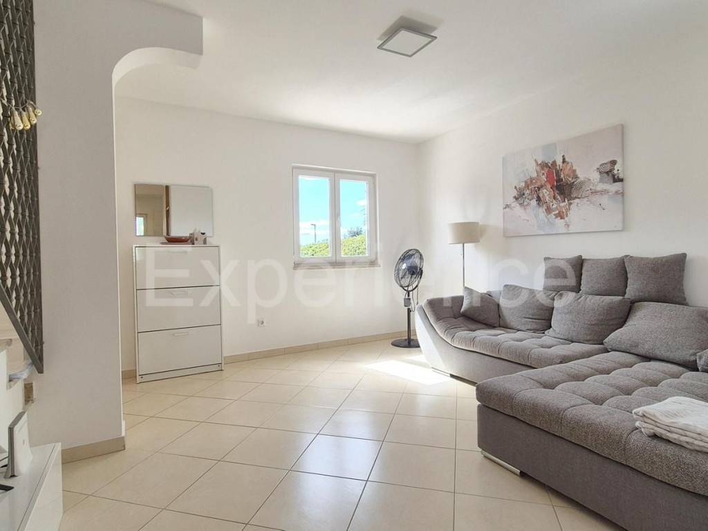 In an idyllic and peaceful setting in the vicinity of Poreč, and just 1.000 meters from the sea, a semi-detached house with a total area of 103 m is for sale. The house is spread over on three floors, thoughtfully designed for maximum comfort and functionality. The interior is designed with an emphasis on airiness and natural light.