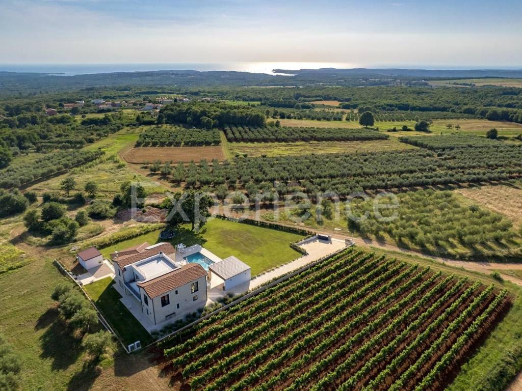 Nestled in a rare and privileged location on the western coast of Istria, just outside Poreč, is this newly built and fully furnished luxury villa - a harmonious blend of elegance, privacy and the authentic beauty of the Istrian landscape. Situated on the very edge of the construc-tion zone, where the view opens up to vineyards, olive groves and the endless sea.