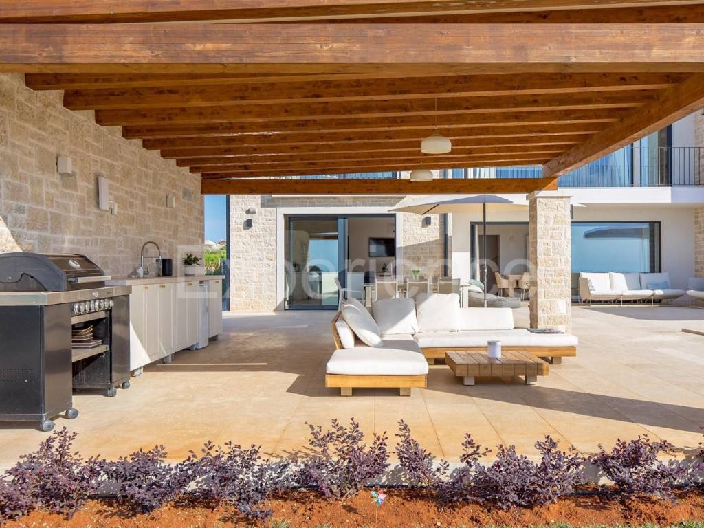 The villa is located on a building plot with a total area of 2.500 m2. The harmonious Mediterra-nean architecture of the villa and modern elegance provide contemporary comfort that is in har-mony with the carefully planned Mediterranean garden and the surrounding landscape. High ceil-ings and wide glass openings create an extraordinary breadth of space, while almost each room offers a breathtaking view - of the olive groves, vineyards and the sea.