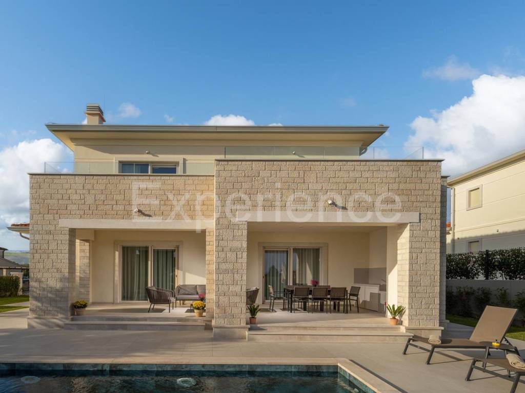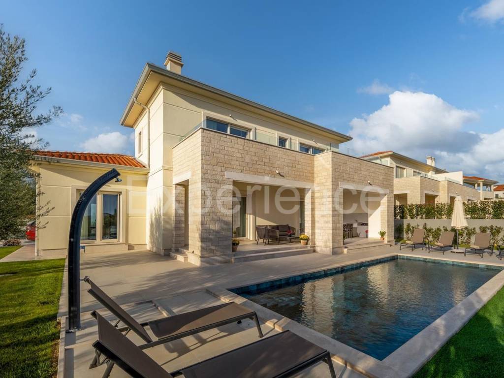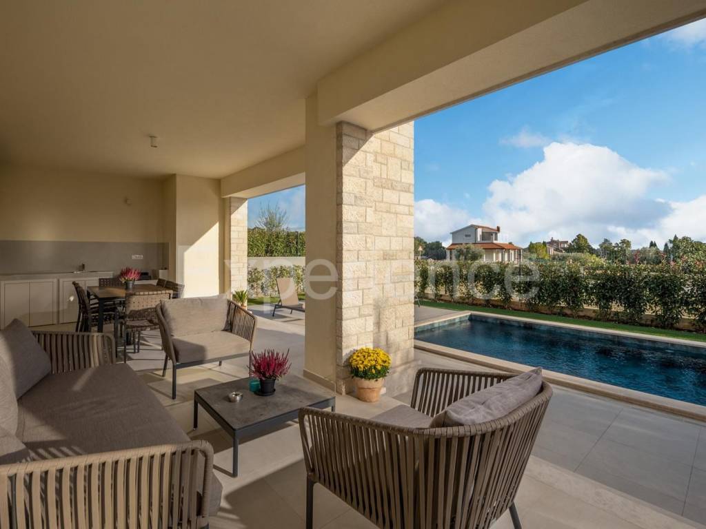 In the vicinity of Poreč - approx. 1.500 m from the sea, in a very quiet environment a villa with a heated pool is for sale, with a total net area of 208 m. Villa built in 2022., very high-quality and equipped with high-quality equipment.
