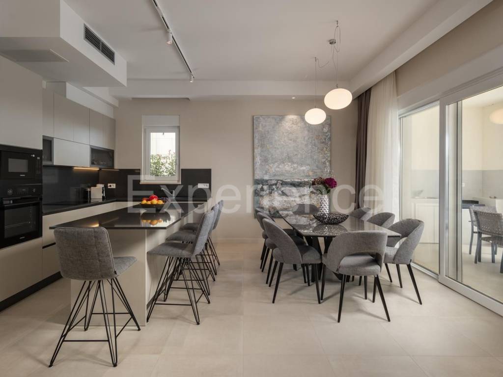 The villa is on sale fully furnished with custom-made designer furniture, an Italian LUBE CREO kitchen with SAMSUNG appliances.