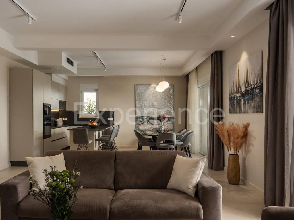 The villa is spread over two floors. On the ground floor there is: entrance hall, a bright open space that unites the living room, kitchen and dining room and leads to a spacious covered terrace of 31 m. On the ground floor there is also a bedroom with its own bathroom and wardrobe, a technical room and a toilet. On the first floor of the villa are situated two comfortable bedrooms, each with its own bathroom and access to a spacious terrace (31 m) with a view of the sea.