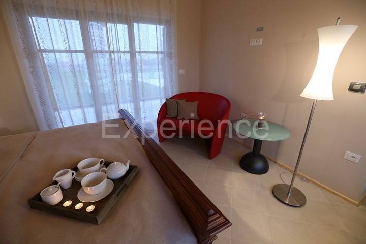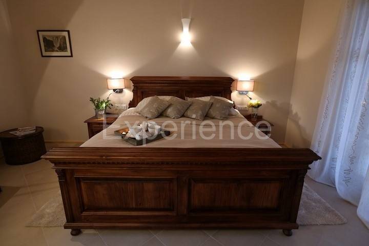 Nearby Svetvinčenat - approx. 15 km from the sea - in a quiet environment there is an beautiful villa, surface of 374 m2. It consists of three floors: basement, ground floor and first floor. In the basement is situated a tavern and wine cellar. The ground floor comprises: entrance hall, living room with fireplace, dining room, kitchen, bedroom with bathroom, guest toilet, spacious covered terrace and storage. While on the first floor are situated two bedrooms and each bedroom has its own dressing room, bathroom and balcony. Villa has a garden surface of 2.000 m2. In the garden is situated a pool surface of 60 m2.