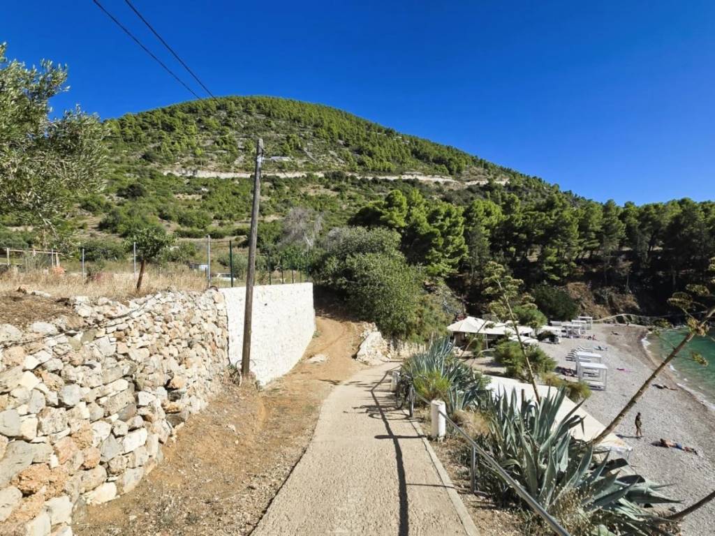 Atraktivno zemljište površine 1.200 m2, smješteno 1. red od mora i plaže Kamenice u Komiži na otoku Visu, pravilnog pravokutnog oblika, koje se nalazi u turističkoj T3 zoni - kampovi, potrebna izrada detaljnijeg plana, pristup autom, napravljeni kvalitetni potporni zidovi, prekrasni pogled na more i otoke Biševo i Svetac.