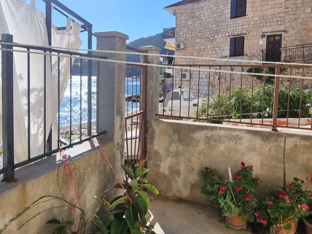 Dvoetažni dvosobni komforni stan ukupne površine 45,68 m2, smješten u kamenoj kući direktno na šljunčanoj plaži u Komiži na otoku Visu, prizemlje i 1. kat, sa ulazom s Ribarske ulice i s plaže, betonske međukatne konstrukcije, sa ograđenim dvorom ispred, površine cca 20 m2, kojim se koristi isključivo ovaj stan, pogled na more i plažu, u blizini svih sadržaja, rijetko na tržištu.