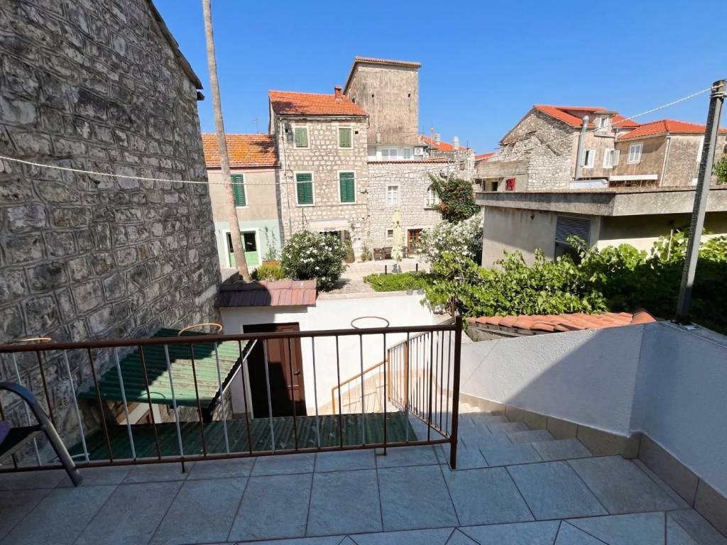 Renovirana kamena kuća na dvije etaže, ukupne bruto površine 94 m2, s dvorom površine 17 m2, na fantastičnoj lokaciji u strogom centru Starog Grada, nedaleko od rive, koja se sastoji od kuhinje s blagovaonicom i dnevnim prostorom u prizemlju, kupaonice i WC-a u dvorištu, odakle se vanjskim stepenicama dolazi na kat gdje je pristupna terasa površine cca 7 m2, dvije spavaće sobe i ostava, sve namješteno i opremljeno.