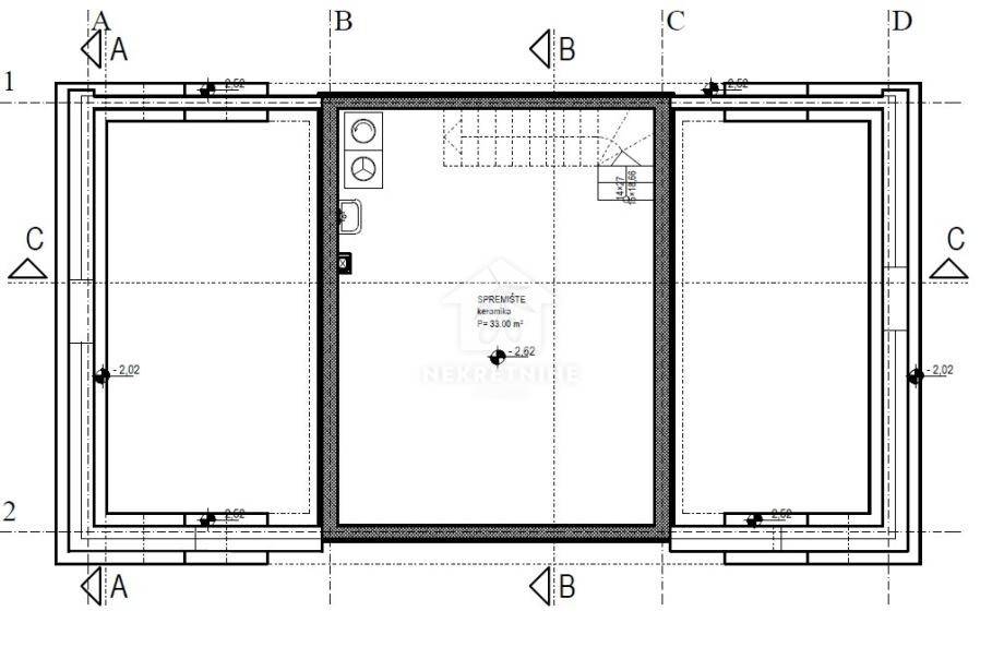 Podrum: 30 m² (uz mogućnost proširenja do 200 m² jer je ukopan)