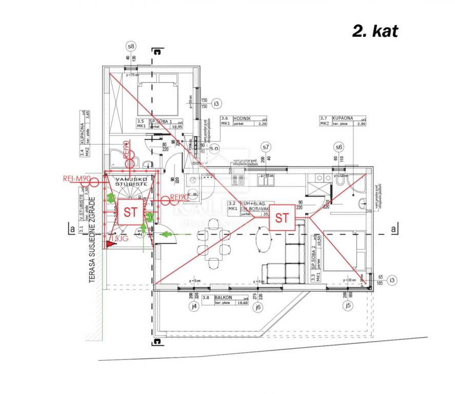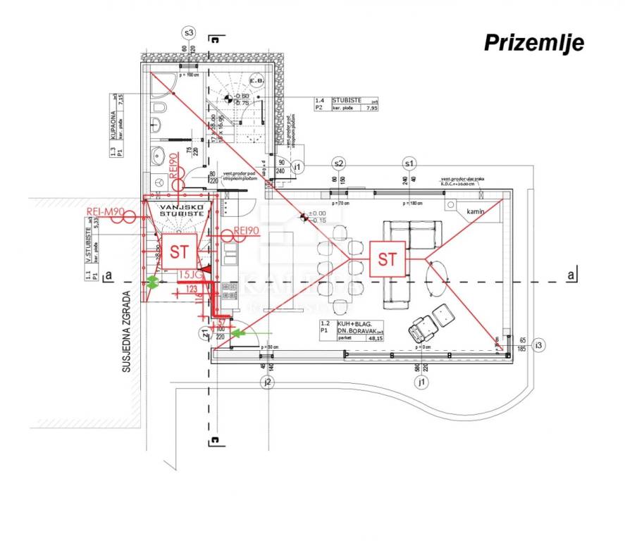 A modern house of 216.28 m² in the first row by the sea in Diklo. It is a new building with two residential units, a landscaped yard, and 4 parking spaces, only 10 m from the sea. The house was not planned for sale during construction but for permanent living.