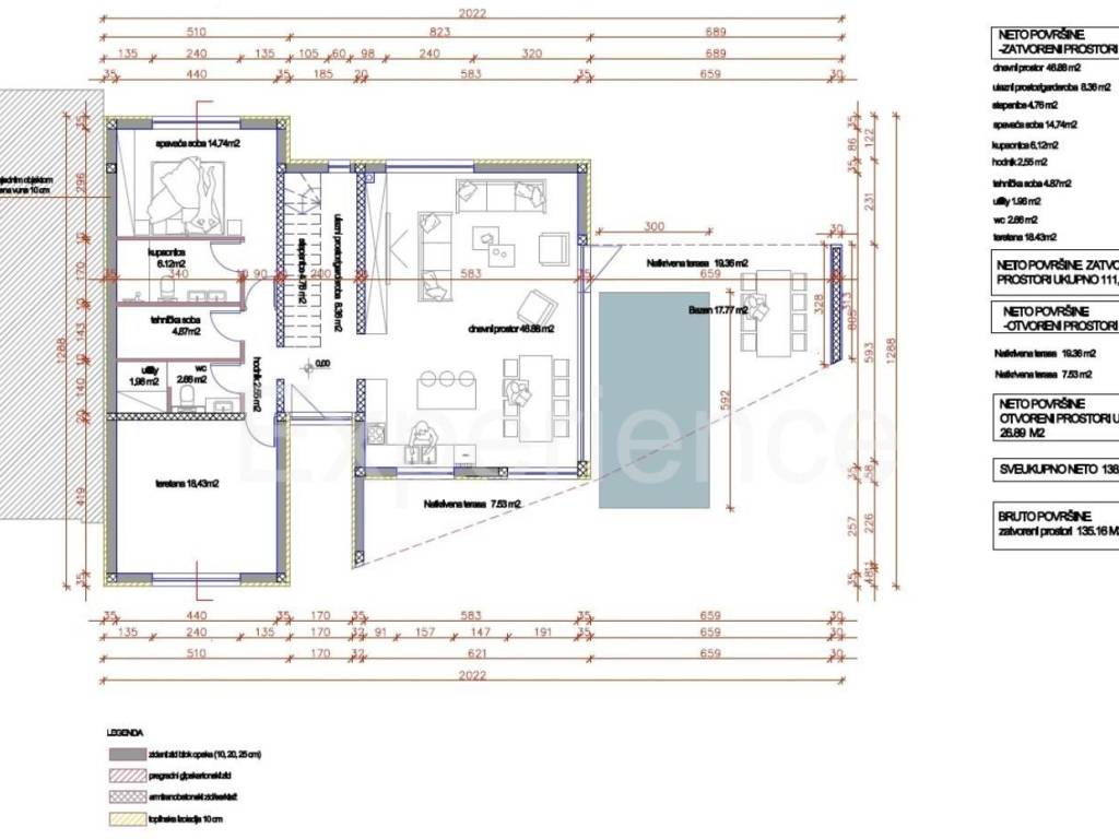 Ishodovana je građevinska dozvola i plaćene su komunalije za izgradnju dvojne obiteljske kuće sa bazenom, ukupne neto površine 317 m. Plaćen je komunalni doprinos u iznosu od 7.500 .