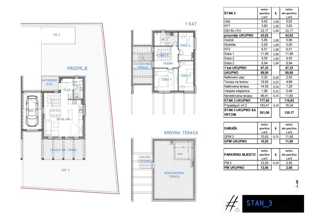 Kući pripadaju vrt (NKP 18,34 m2), garažno parkirno mjesto (NKP 11,95 m2) te parkirno mjesto (NKP 2,50 m2). Ukupna neto korisna površina kuće je 149,62 m2.--Na mirnoj lokaciji u Maksimiru, u slijepoj ulici koja osigurava privatnost i tišinu, razvija se projekt modernih kuća u nizu — spoj funkcionalne arhitekture, suvremene tehnologije i prilagodljivog dizajna - Remete Hills. Svaka kuća projektirana je s naglaskom na energetsku učinkovitost, udobnost i dugoročnu vrijednost.Objekti pripadaju energetskom razredu A+, a opremljeni su dizalicom topline, podnim grijanjem i klimatizacijom u svim prostorijama. Kvalitetna PVC stolarija s troslojnim staklom i aluminijskim roletama s električnim podizačima osigurava izvrsnu toplinsku i zvučnu izolaciju, dok protuprovalna ulazna vrata pružaju dodatnu sigurnost. U garaži je predviđen priključak za punjenje električnih automobila, a sustav za pročišćavanje vode omogućuje jednostavnije održavanje doma.Podne obloge moguće je birati među više vrsta parketa i keramike, uz opciju ugradnje van projektnih materijala i načina postavljanja. Posebna vrijednost projekta leži u fleksibilnosti dizajna — kupcima je omogućeno prilagođavanje tlocrta i završnih materijala vlastitim željama. Tlocrt se može mijenjati prema potrebama, bilo da je riječ o povećanju ili smanjenju broja soba, promjeni rasporeda ili personaliziranom uređenju interijera, uz stručnu podršku arhitekata i izvođača.Svaka kuća raspolaže prostranom krovnom terasom s pogledom na Zagreb, idealnom za opuštanje ili dodatne sadržaje poput jacuzzija, saune ili roštilja. Betonska konstrukcija visoke kvalitete, uz pažljivo izvedene detalje, jamči trajnost i sigurnost objekta.Projekt u Maksimiru nudi dom koji spaja mirnu lokaciju, visoku energetsku učinkovitost i mogućnost potpune prilagodbe — mjesto gdje se suvremeni standardi stanovanja usklađuju s osobnim stilom života.