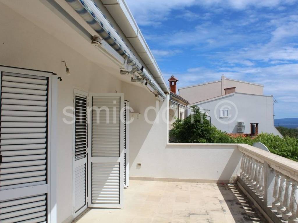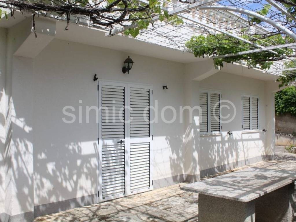 A house is for sale in a quiet and attractive area of Ciovo, on the southern part of the island. The house has a beautiful sea view, which is its main asset, and is located only 120m from the beach. It is located on a plot of 490 m and consists of two separate apartments, each of which has an area of around 70 m2. The apartment on the upper floor consists of a spacious living room and dining room, a fully equipped kitchen, a bedroom with a bathroom, a storage room and a large terrace with a beautiful sea view. The apartment on the lower floor has a similar layout but has two bedrooms. The house has a spacious yard and a garden with olive trees, and with additional landscaping it has the potential to create a relaxation area and an outdoor kitchen or fireplace. This is an excellent opportunity to acquire a versatile property near the sea - ideal for families, holiday rentals or both.