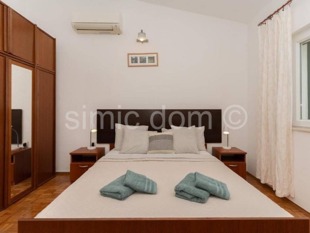 We are mediating the sale of a truly beautiful, well-maintained house with two apartments in a very quiet location in Razanj. Its area is 150m2. The house extends over the ground floor and first floor, and on each floor, there is one apartment with two bedrooms, a bathroom and a living room with a kitchen and a dining area. The apartment on the ground floor is connected to a beautiful tiled terrace, while the terrace on the first floor offers a wonderful view of the sea. A special advantage of the house lies in the spacious, tiled garden with typical Mediterranean vegetation, and there is an additional building (20m2) that is arranged as a studio apartment. The house also has two parking spaces, while the sea is 120m away by road. The house is in excellent condition (regularly maintained and renovated), ready to move in immediately and is a very good choice for tourist rental, but also offers a range of options for a peaceful family vacation. All amenities are within a ten-minute walk (shops, restaurants, cafes). Ownership is neat.
