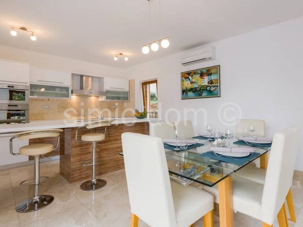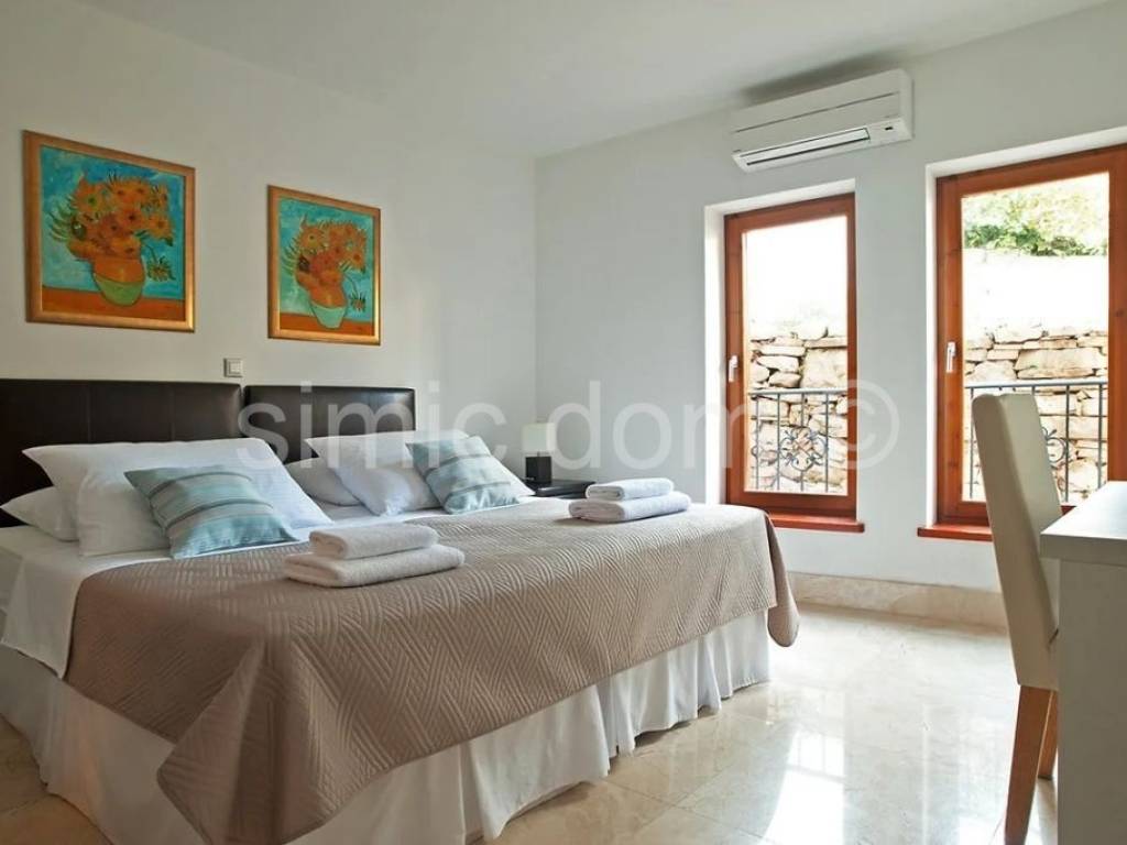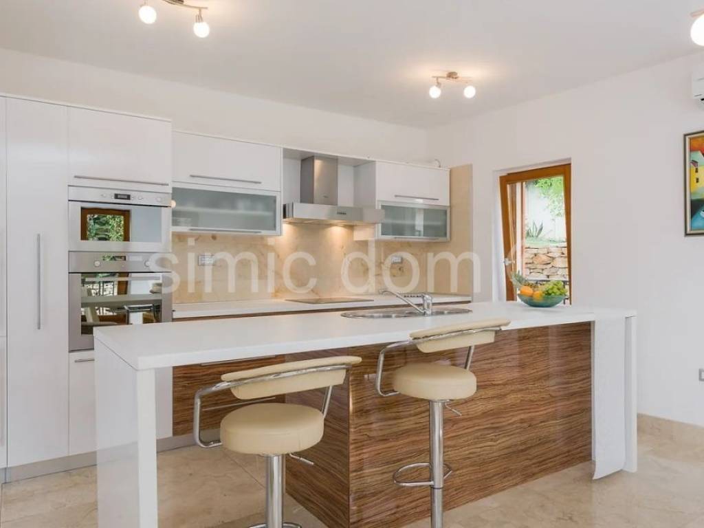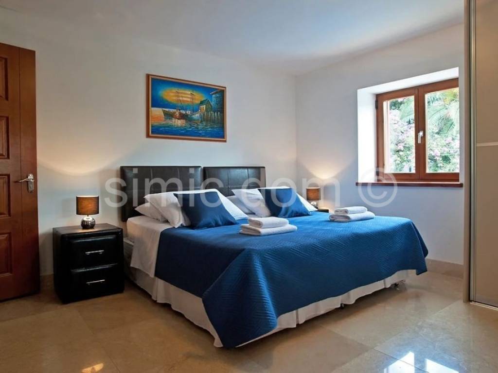 We mediate in the sale of an apartment in the immediate vicinity of the sea, in Milna on the island of Brac. Inside the residential building there are two more apartments, each with a separate entrance. Each of them is provided with parking and one of the two swimming pools on the plot is intended for shared use. The second, private pool, belongs to this ground floor apartment with a garden. The apartment has an internal area of 146 m2 and consists of a hallway, anteroom, 3 bedrooms, additional rooms, 3 bathrooms, laundry room, kitchen with dining room and living room. The living room and one of the bedrooms offer access to the outside part of the apartment, namely a terrace with a dining and relaxation area with a private pool. The apartment is fully furnished and equipped, and in combination with the attractive location, proximity to the sea, beaches and amenities, it makes an excellent opportunity as a property for your own vacation and also for a rental business.