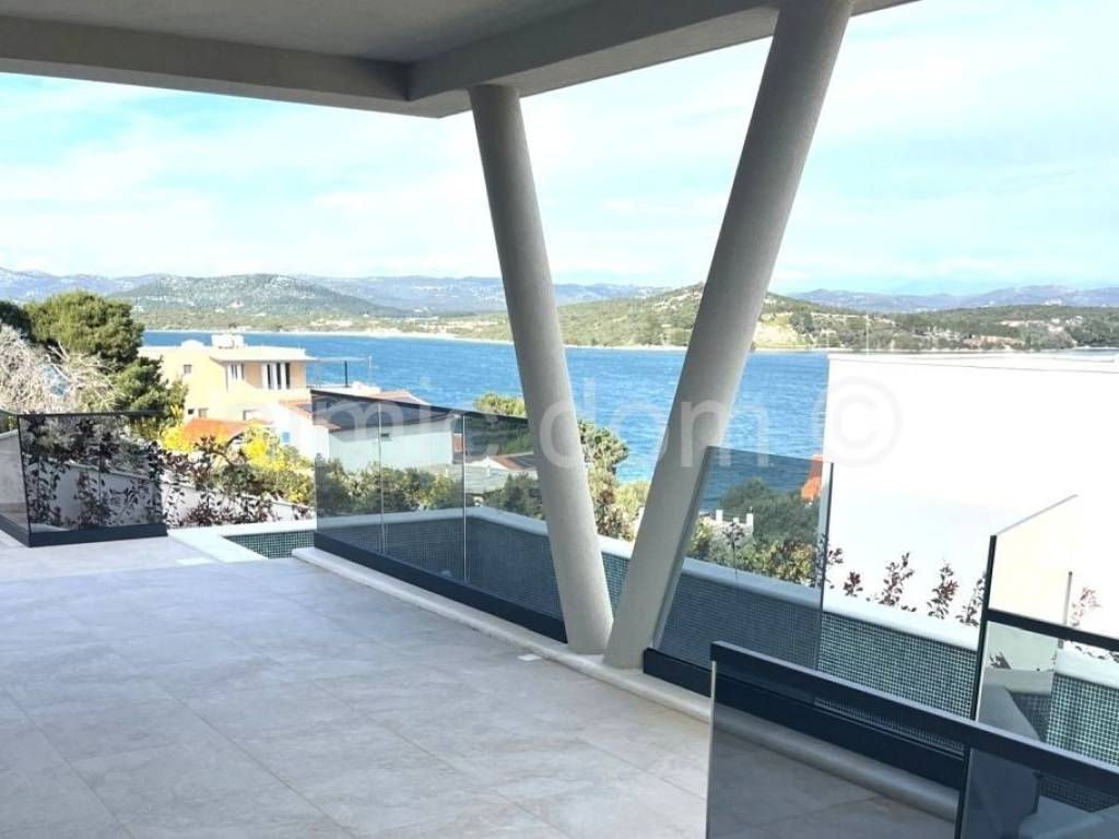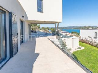 A beautiful villa located in the beautiful village of Betina on the island of Murter, just a few steps from the pebble beach, is for sale. The villa is an excellent combination of luxury, quality and modern design. The villa is built on a plot of 650m2, and spreads over 3 floors, with a total net usable area of 253m2. It consists of a basement with a spacious garage, storage and laundry room. On the ground floor of the villa there is a living room with a kitchen and dining room, and two bedrooms, a bathroom, toilet and pantry. All rooms on the ground floor have access to a large terrace with a sea view. On the first floor there are 2 more bedrooms, each with access to a terrace, and two more bathrooms and a dressing room. Spacious terraces and glass railings provide an unobstructed view of the sea from almost every room as well as plenty of daylight, while underfloor heating, air conditioning and top-quality joinery ensure maximum comfort throughout the year. The exterior of the villa features a large swimming pool located on the main terrace, while around the villa is a beautifully landscaped cascading garden, with illuminated paths. Betina is a small Dalmatian town near Murter, known for its rich maritime heritage, authentic Mediterranean charm and picturesque stone streets. Here you can enjoy top-notch restaurants, untouched nature and crystal-clear sea. The place is an ideal place for those who want a more peaceful vacation, but still close to all the amenities of the larger Murter.