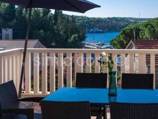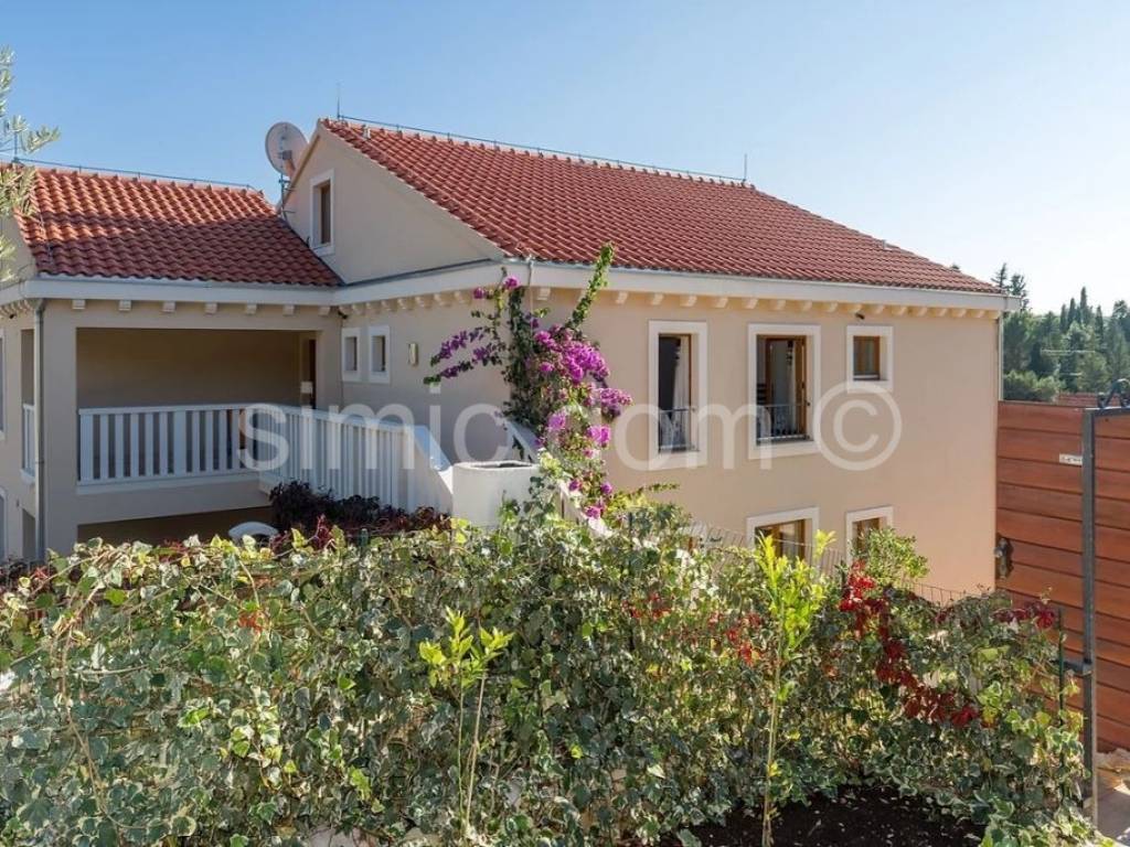 We are mediating the sale of a spacious two-story apartment in an attractive location a few steps from the sea on the island of Brac. In addition to this apartment, there are two more apartments within the residential building, each with a separate entrance. Each of them has a parking space and one of the two swimming pools located on the plot is intended for shared use. This duplex apartment extends over the second floor and the attic. The apartment has an internal area of 193 m2 and also a terrace, loggia and balcony. With the calculated coefficients, the apartment has a total net usable area of 210 m2. On the lower floor there is a hallway, laundry room, two bedrooms with private bathrooms, a toilet, a living room and a kitchen with a dining room. The terrace is located right at the entrance, and the balcony and loggia can be accessed from the living room and one of the bedrooms. An internal staircase leads to the upper floor, or the attic, where there is a third bedroom with an attached bathroom. The apartment is fully furnished and equipped, and in combination with an attractive location, proximity to the sea and facilities, it makes a great opportunity as a property for your own vacation and also for the rental business.
