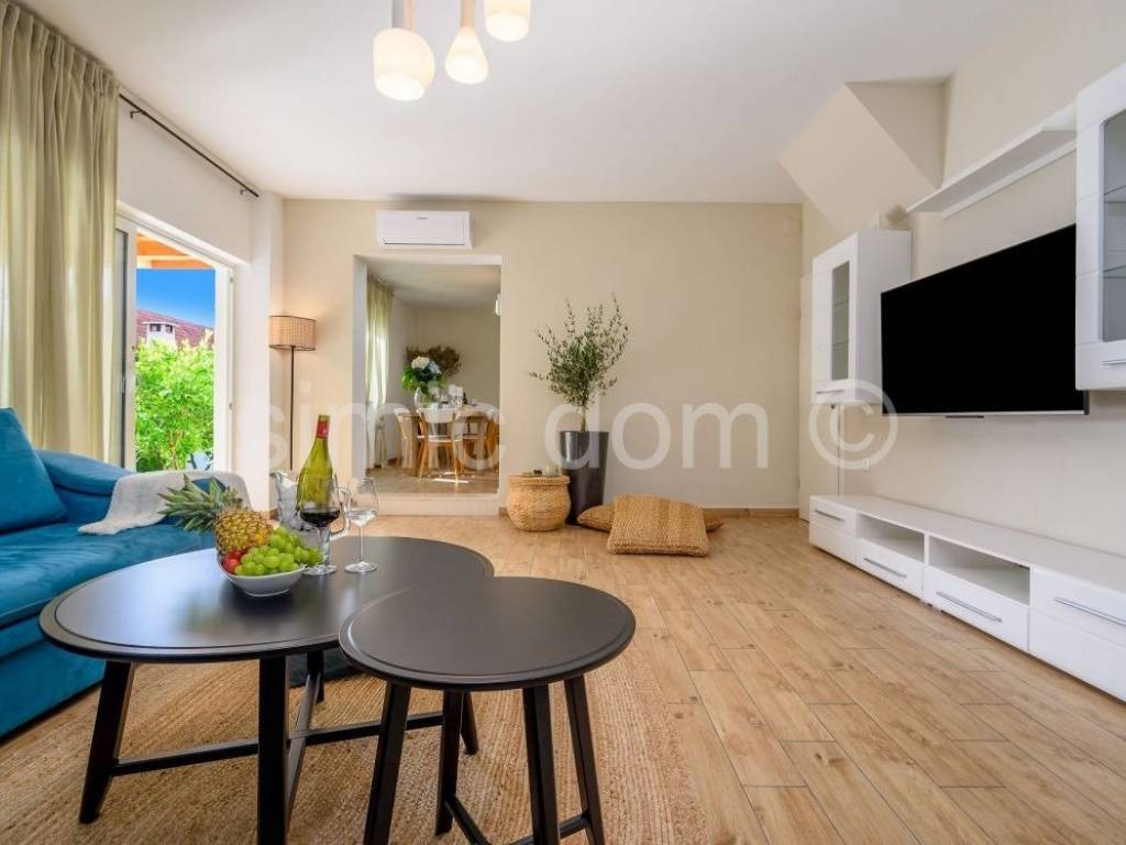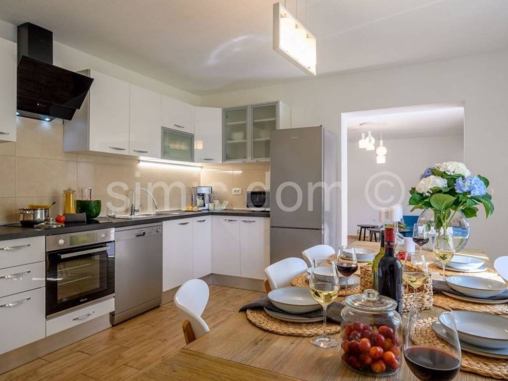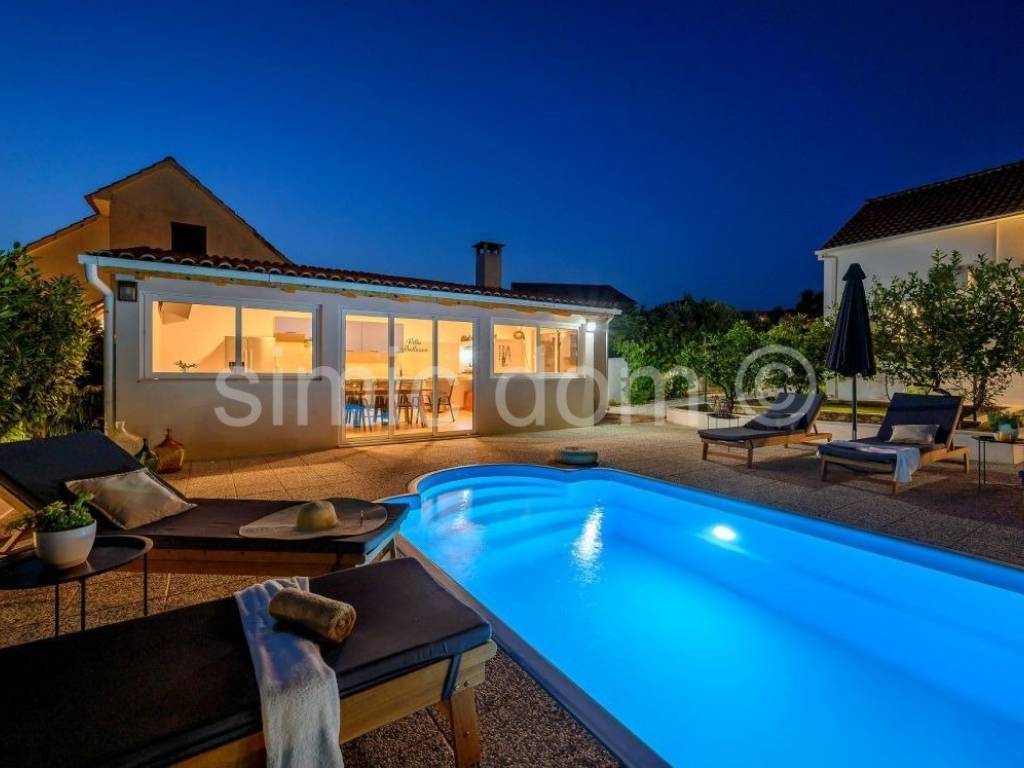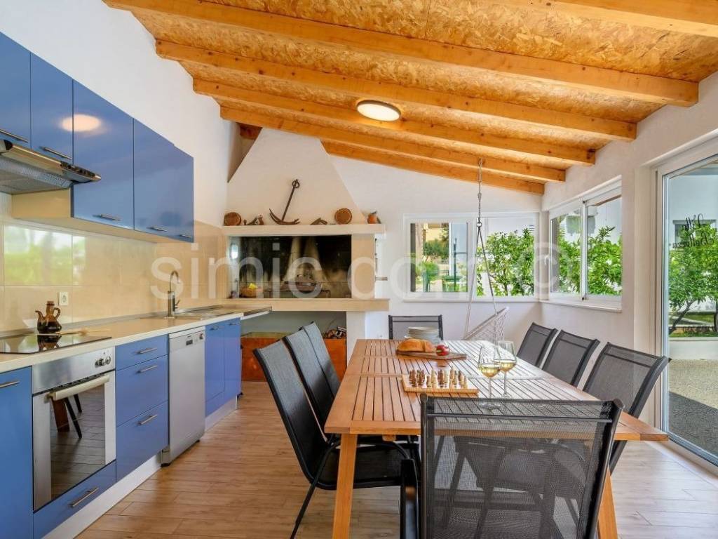 We are mediating the sale of a charming villa with a spacious garden and swimming pool, in a prime location on the island of Brac. The villa is spread over the ground floor and first floor. It has a living area of 196 m2 and is located on a plot of 520 m2. It consists of a living room, kitchen with dining room and four bedrooms, each with its own bathroom. The garden has a terrace with a swimming pool, a sunbathing area and an auxiliary building that serves as a summer kitchen and a great space for celebrations and gatherings, which also contains a fireplace. The villa is fully decorated and furnished, and it is possible to park several cars. Given the excellent location, capacity and content it has, this villa is an excellent choice for investment. Ownership is neat.