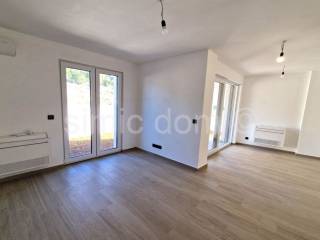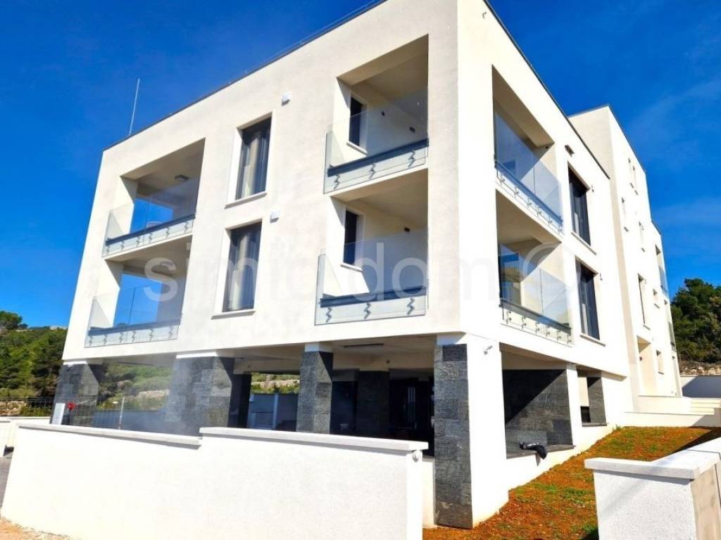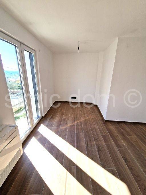 Beautiful and modern apartments in a new building in Jezera on Murter are for sale. They are located in a very quiet street, yet within 500m of all amenities, such as shops, cafes and the beach. The building is being built by a renowned investor with many years of experience in building extremely high-quality and luxurious apartments with top-quality materials. The apartment marked S2 is two-storey and has a total internal area of 81.43 m2 with the addition of two terraces with a total floor area of 9.61 m2, a garden of 51 m2 and a parking space of 14 m2, all included in the price. With coefficients included, the apartment has a total net usable area of 102 m2. On the ground floor of the apartment there is a hallway, an open-concept living room with a dining room and kitchen, a bathroom, a small storage room, a covered terrace and a garden of 52 m2. The first floor consists of two bedrooms, two bathrooms and a covered terrace with a view of the sea and the surroundings. Each apartment has its own garage space and storage room in the basement of the building. The entire building is built with exceptionally high-quality materials, which guarantee comfortable living, superior sound and thermal insulation. All windows are glazed with BluEvolution windows, sliding walls with a low threshold, the apartments are equipped with a smart Gira system that controls heating, cooling, roller shutters, as well as a burglar alarm. The apartments are equipped with air conditioning in all rooms, have fresh air recuperators, underfloor heating in the bathrooms with Geberit sanitary ware and a water softener that protects the installations and household appliances. The floor coverings are ceramic, the bedrooms have parquet. The entrance doors to each apartment are fireproof. Buyers are exempt from real estate transfer tax. This property is an excellent choice considering the top quality of the new building, the proximity of amenities and the beautiful Jezera on Murter.
