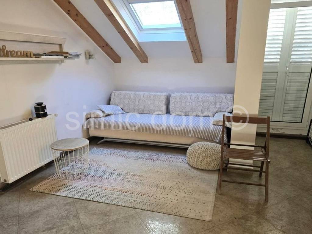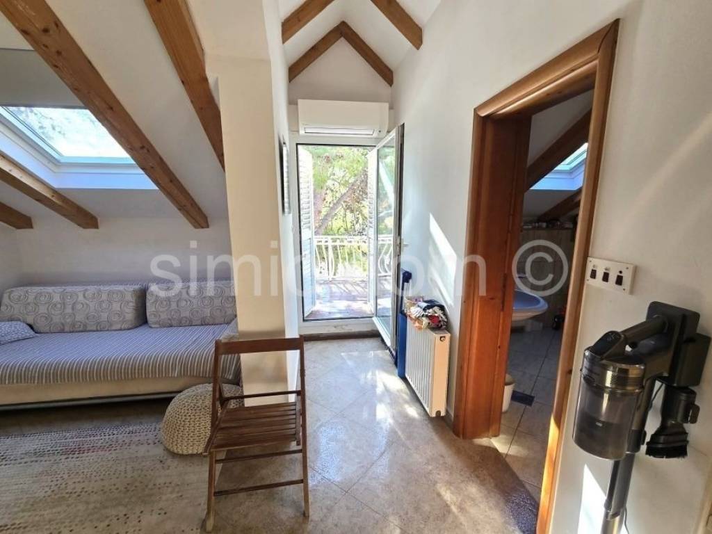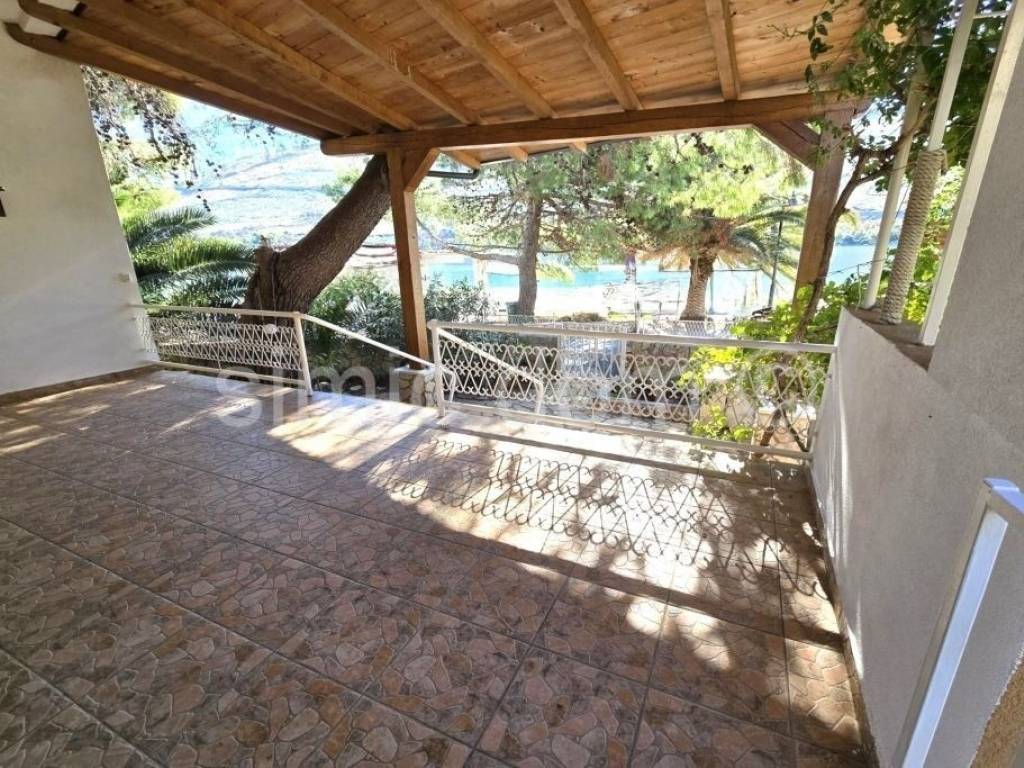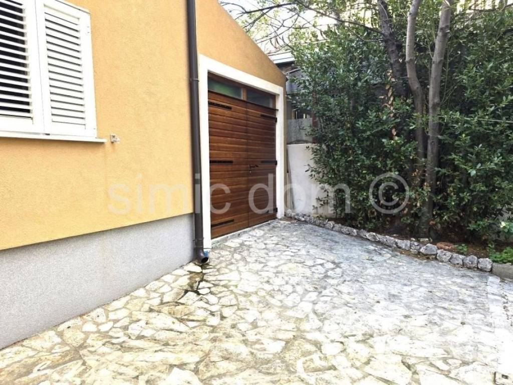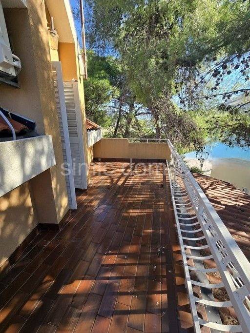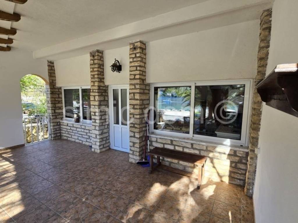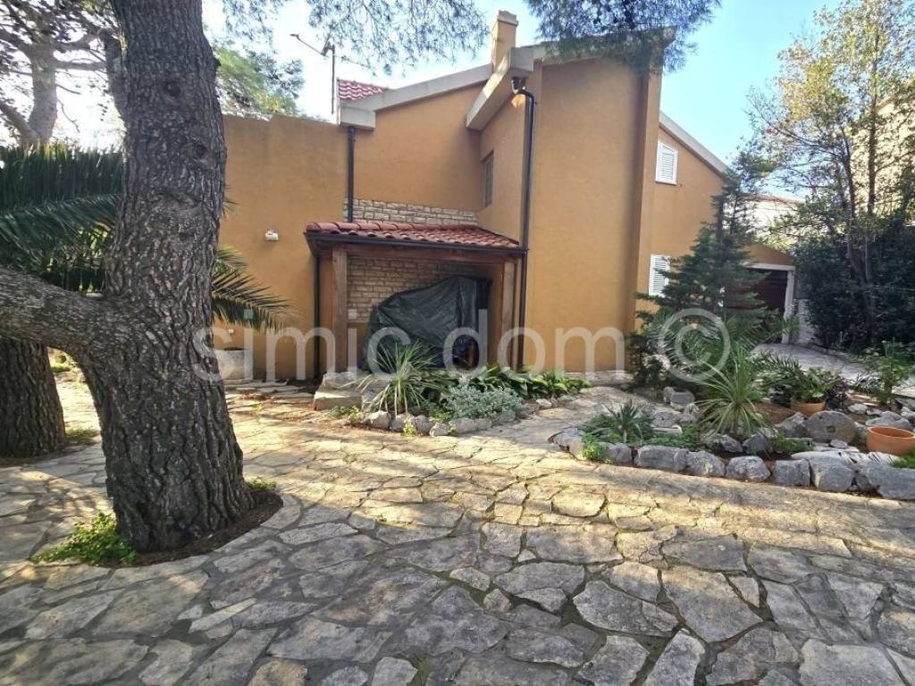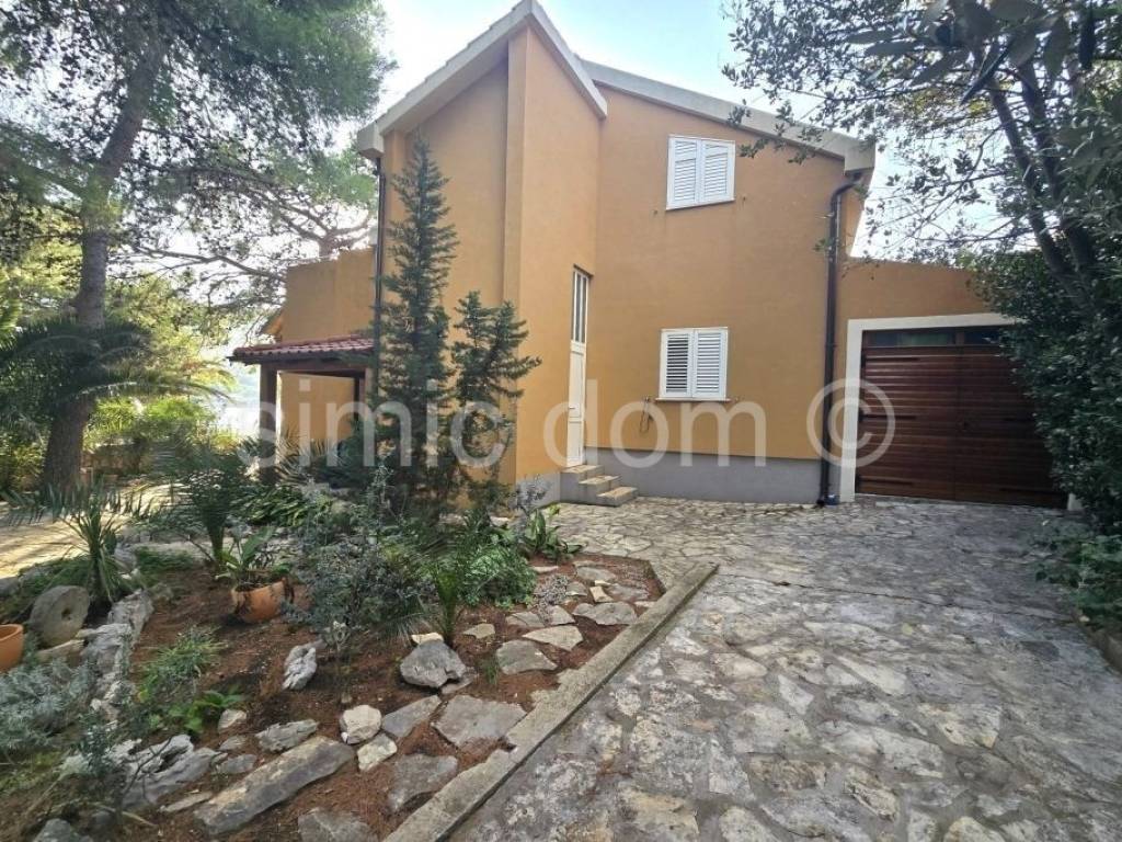 A property with great potential is for sale not far from Sibenik, located just a few steps from the beach. The house is located on a 400 m2 plot with plenty of greenery and natural shade. The house itself consists of a small basement, ground floor and first floor, with a total floor area of 156 m2, of which about 127 m2 of interior space. On the ground floor there is an apartment consisting of a kitchen and dining room, two bedrooms and a bathroom, with an area of approximately 50 m2 and a covered terrace of approximately 17 m2 with a fantastic view of the bay and the beach. On the first floor, which is accessed via a separate entrance, there is an apartment of the same size, with a terrace of 12 m2 with an equally beautiful view of the sea. The house has a basement area of approximately 12 m2, as well as a garage of 15 m2. Natural shade is provided by the greenery and pine trees that have been growing right next to it for years. The spacious garden decorated with Mediterranean plants is abundant in the shade of old pine trees, and there is also a covered lounge of 8 m2, a barbecue, a summer kitchen and outdoor showers. The house has built-in central heating, as well as air conditioning for cooling and heating. The yard provides parking for 5 cars, and the owners also use a boat mooring on the waterfront for a vessel up to approximately 12 meters long in front of the house.