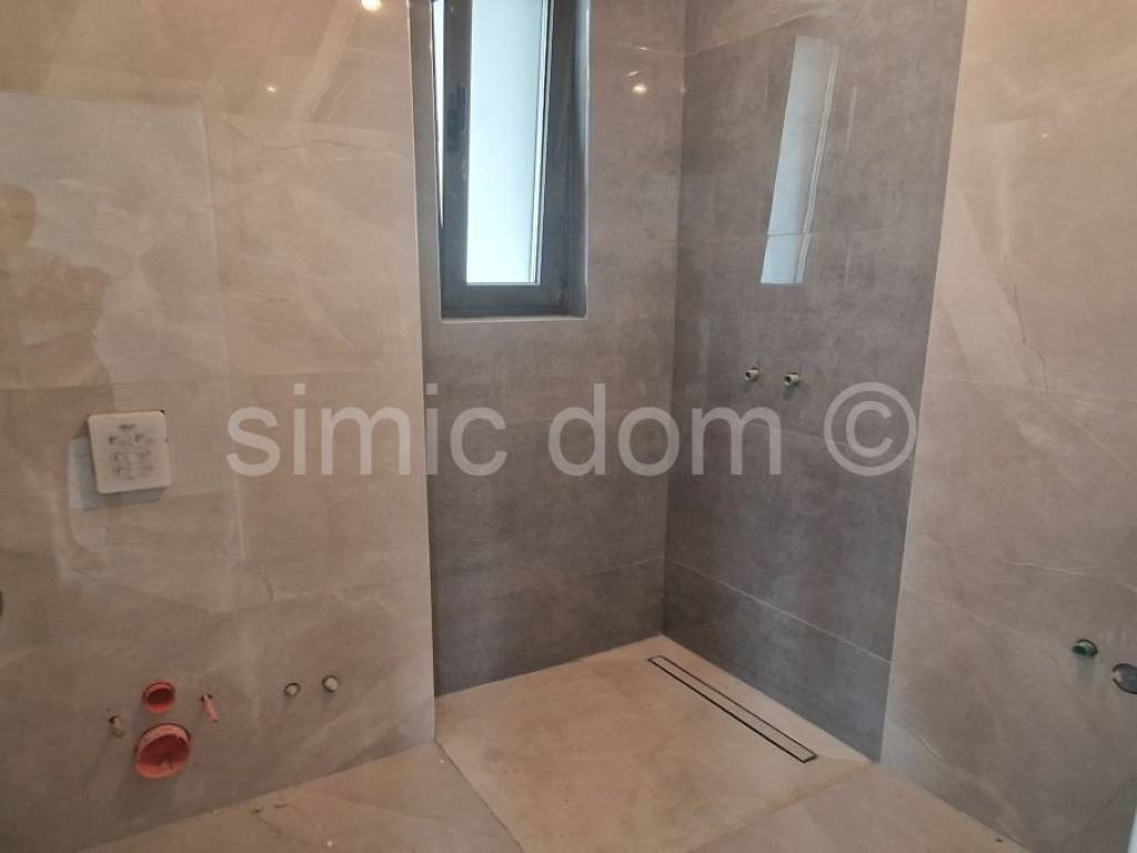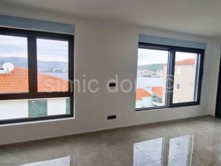 For sale is a penthouse apartment placed on the second floor of a new building in Okrug Gornji. The building is located in an excellent location that is quiet and yet less than 200 meters from the beach and other amenities. The apartment has a total internal area of 80m2, plus two more terraces: a 14m2 covered terrace within the apartment and an 82m2 roof terrace. Including coefficients for terraces, the apartment has a net area of 107.80m2. The apartment also includes two outdoor parking spaces in the price. The apartment consists of a hallway, three bedrooms, two bathrooms, a living room with a kitchen and a dining room with access to a spacious terrace. Completion of the construction is planned by the spring of 2026. The building will be built to the highest standard, and the apartments will be equipped with air conditioning in every room, underfloor heating, aluminum windows with electric lifts. The sale is made on a "turnkey" basis, which includes installation of ceramics, laminates, installation of sanitary ware, etc.