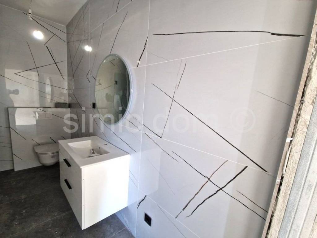 We mediate in the sale of a semi-detached house in a new building in Murter, located in the very center of the town, yet in a very quiet location. It is only a 5-minute walk from the beach and all other facilities and has a wonderful view of the town and the sea. The house consists of two floors, with a total net living area of 117.26 m2. There is a bathroom with toilet and an open concept kitchen, dining room and living room on the ground floor. The staircase leads to the first floor, which consists of a bathroom with toilet, 2 bedrooms and a master bedroom with its own bathroom and a toilet. The house has 2 parking spaces, and there is also a swimming pool in the yard. Thanks to the location of the house, as well as the large windows, the whole house has plenty of natural light throughout the day, and thanks to good insulation, heating or cooling the space will be quick and easy. The house is equipped with high-quality materials and various modern and technologically advanced features, which ensures longevity and a pleasant stay. The house is located in a quiet street close to all facilities, therefore it offers all the advantages of staying on the island of Murter. The house is sold fully furnished, and it is also possible to buy a variation without furniture at a lower price. The expected completion of construction is in the spring of 2025.