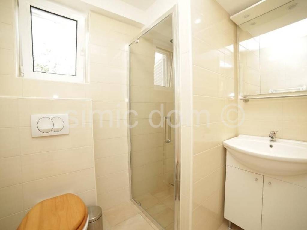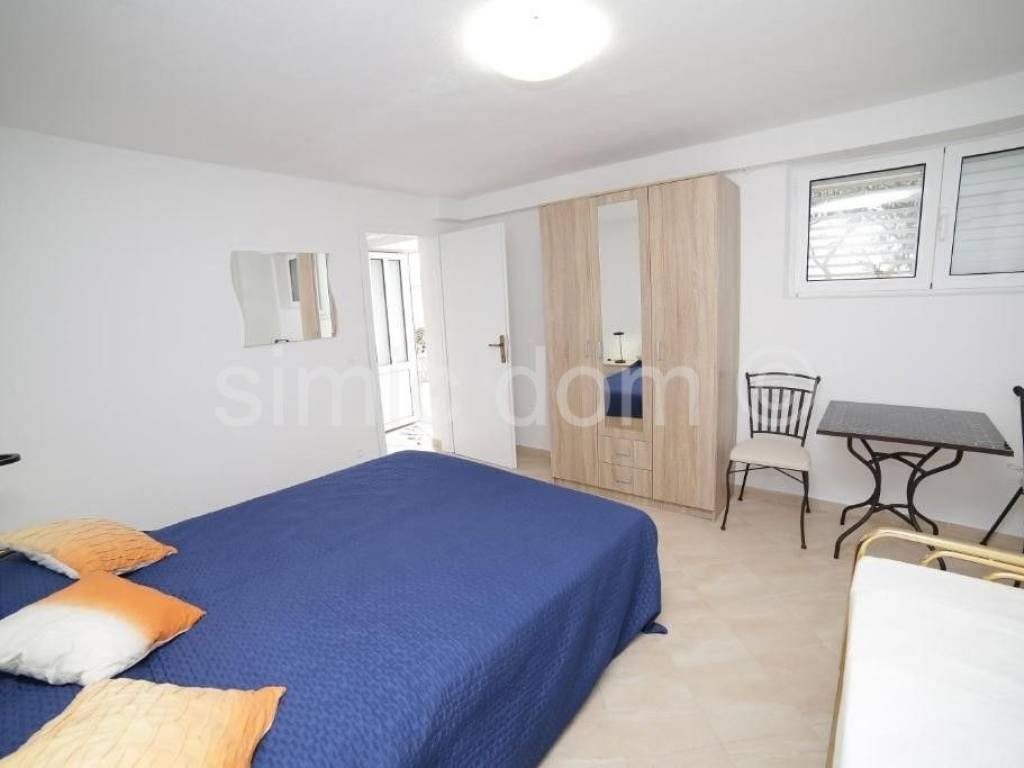 The house is placed on a plot of 637 sqm which includes 6 parking spaces and a landscaped garden with automatic irrigation system. There is also a spacious ground floor terrace of almost 70 sqm with an open barbecue and another smaller terrace of 16 sqm in front of the studio apartment. The one-bedroom apartment in the basement also has its own terrace of approx. 18 sqm. Both three-bedroom apartments have their own balconies facing the sea, each approx. 12 sqm. The house has significant additional potential, primarily due to its location in the immediate vicinity of the commercial and business zone "Žedno Drage". Another important advantage is in the form of possible upgrades of the property - there is the possibility of expanding to a part of the neighboring land plot to the east, i.e. to the main road, which is owned by other persons. Given the position of the building on the plot, it is also possible to ensure the construction of a swimming pool, which would also add significant value and tourist potential.