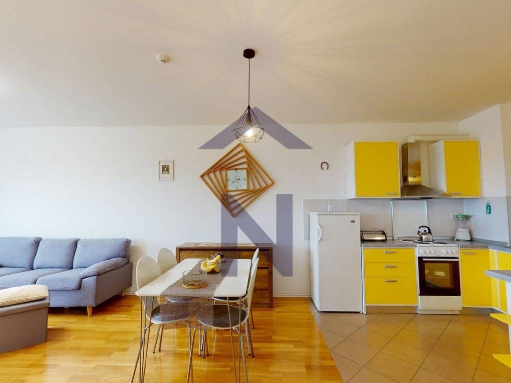 Thearea of the apartment is 46.36 m + loggia 4,81 sqm. It consists of an entrance hallway, living room with kitchen and dining area, loggia, bedroom, and bathroom. It is being sold fully furnished.