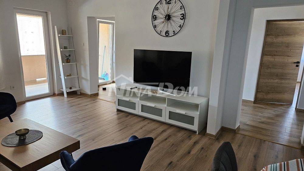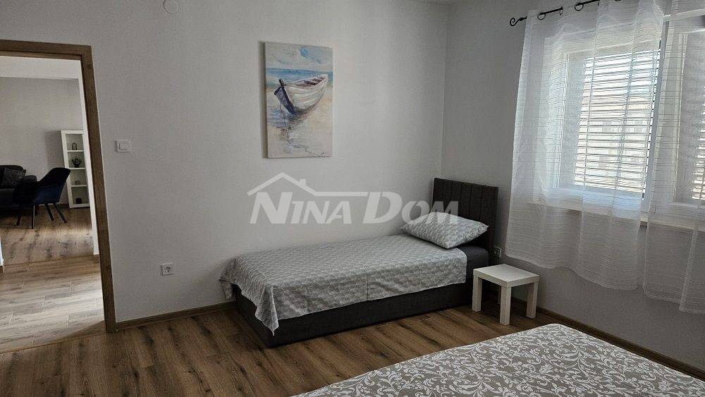 Only 250 meters from the sea and the beach. The beach is landscaped with pine trees without too much crowd.