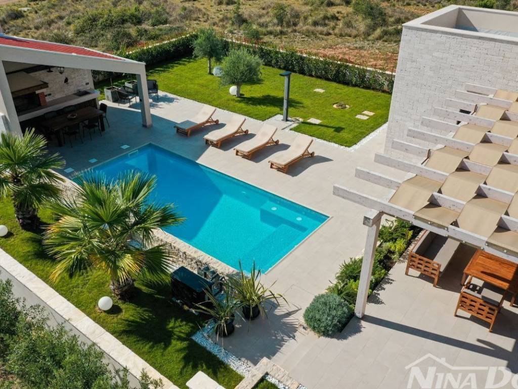 A luxury estate for sale consisting of two independent villas located in a peaceful area near Zadar, with a total land area of 1,884 m. The villas can be purchased together as an exclusive complex or separately.