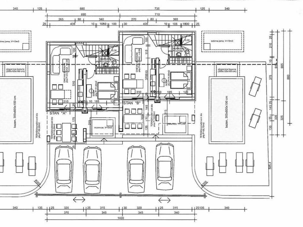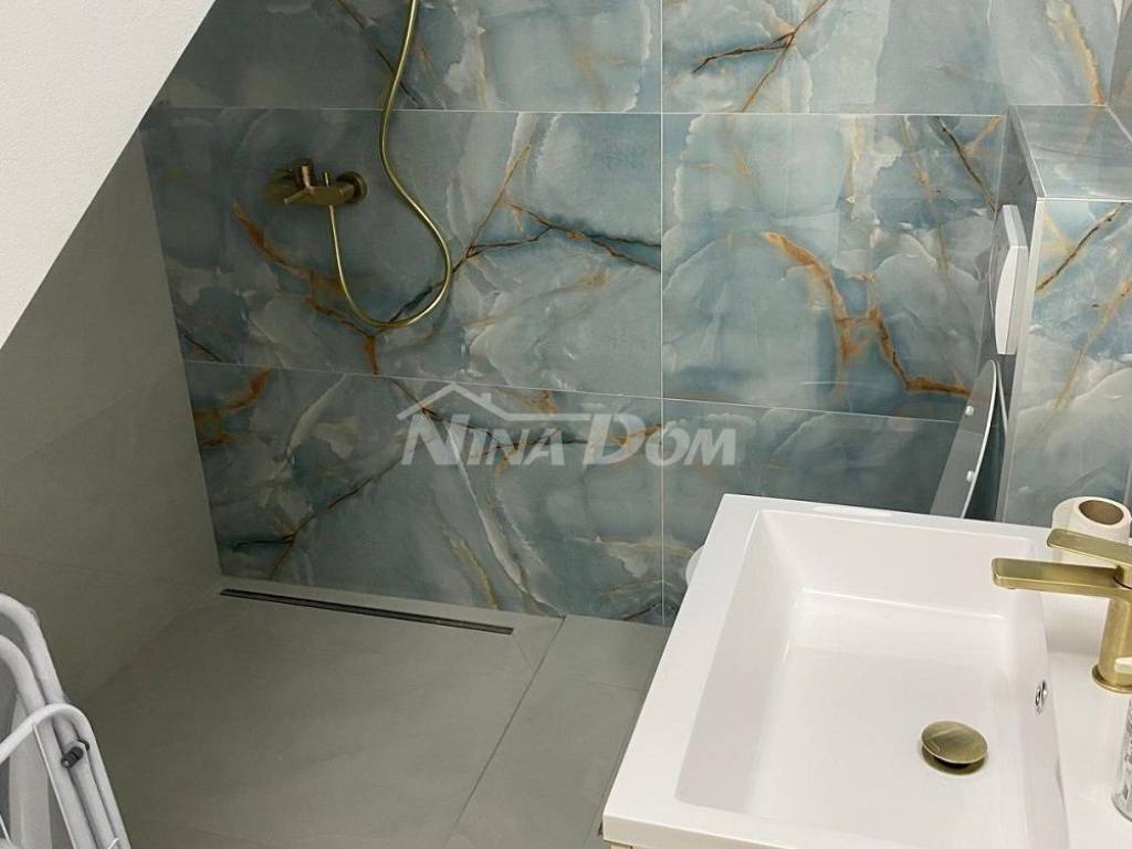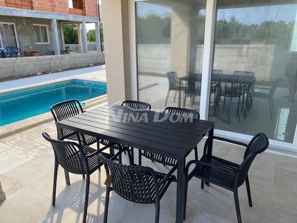 Sastoji se od prizemlja : terasa, kuhinja s dnevnim boravkom, kupaona, jedna spavaća soba, unutarnje stepenice na kat, na katu dvije spavaće sobe, kupaona i balkon s prekrasnim pogledom na more i Zadarski arhipelag.