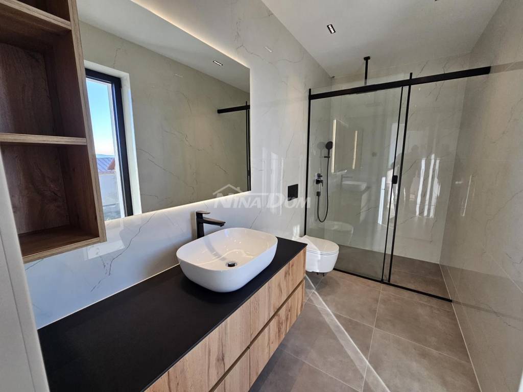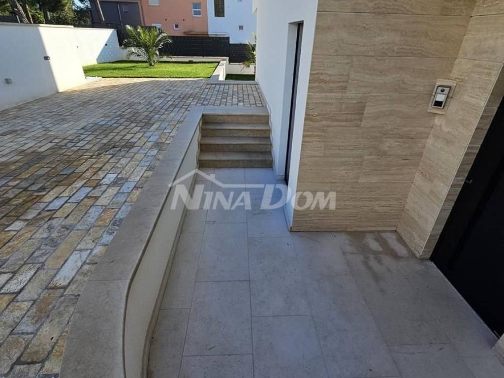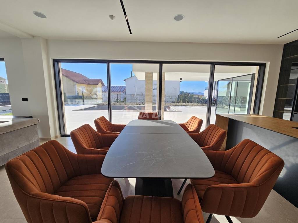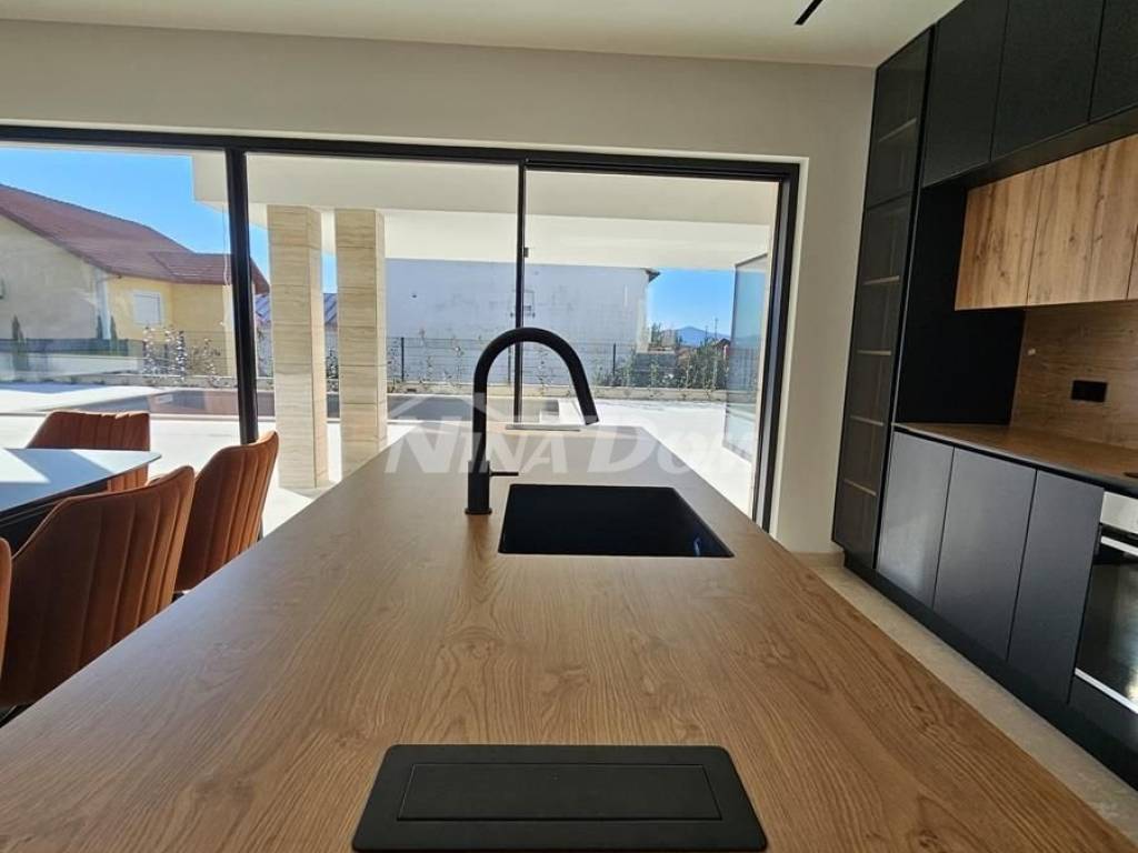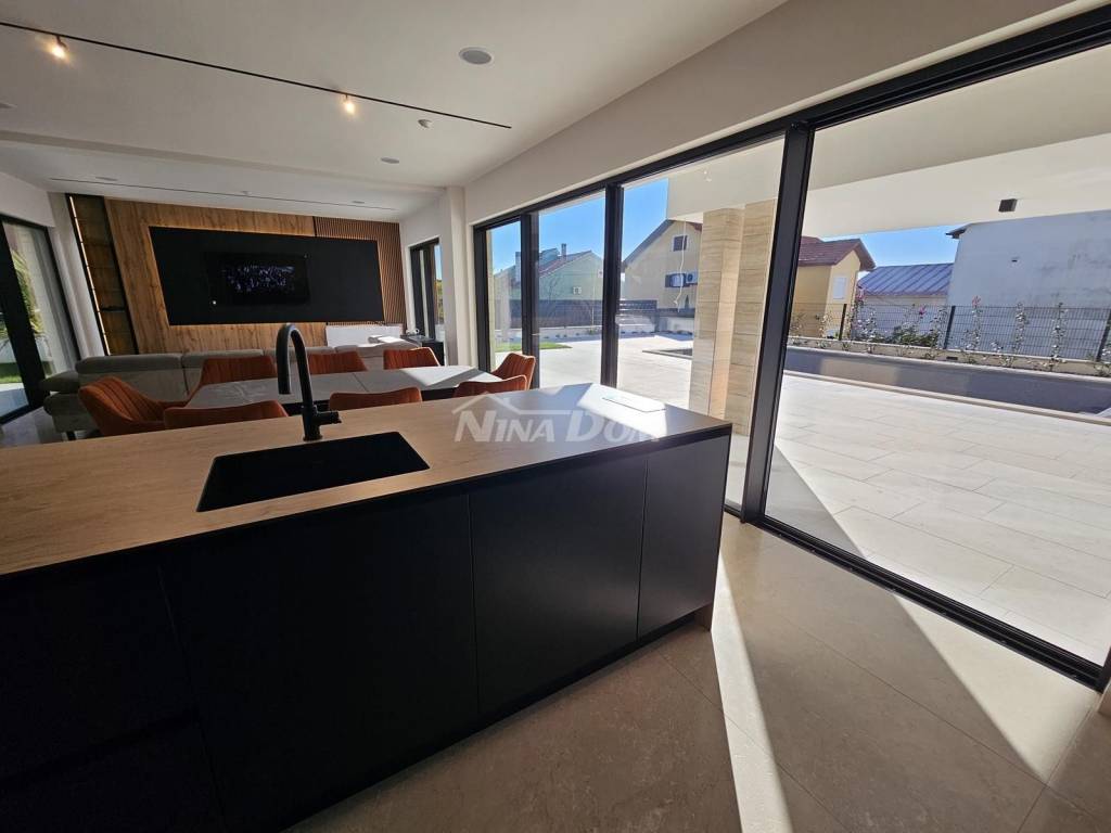 Prodaje sew luksuzna villa na putu Nina u Zadru.Nalazi se na mirnoj i tihoj lokaciji,okružena zelenilom,a opeta blizu svih sadržaja potrebnih za ugodan boravak.Prostire se na dvije etaže,prizemlje i kat.U prizemlju se nalaze ulazni hodnik,tehnička soba,kupatilo,sauna,te soba predviđena za fitness,sobu za relaksaciju,prostrani dnevni boravak sa kuhinjom i blagovaonom,te stubište koje vodi na kat.Na katu se nalaze tri prostrane spavaće sobe,svaka sa svojim kupatilom i ugradbenim ormarima.Iz svih soba se izlazi na prostranu terasu sa koje se pruža pogled na otoke.Cijela kuća je puna svijetlosti zbog velikih staklenih površina.Opremljena je dizalicom topline za grijanje i hlađenje,podnim grijanjem,video nadzorom,villeroy & boch sanitarijama,vrhunskom,minimalističkom alu stolarijom Cortizo,touch prekidačima itd.Na dvorištu se nalazi bazen veličine 32,40 m2 koji je opremljen i dizalicom topline.Cijeli vrt je pokriven automatskim navodnjavanjem.Kuća se prodaje sa svim namještajem.Za sva dodatna pitanja i obilazak,stojimo na raspolaganju.