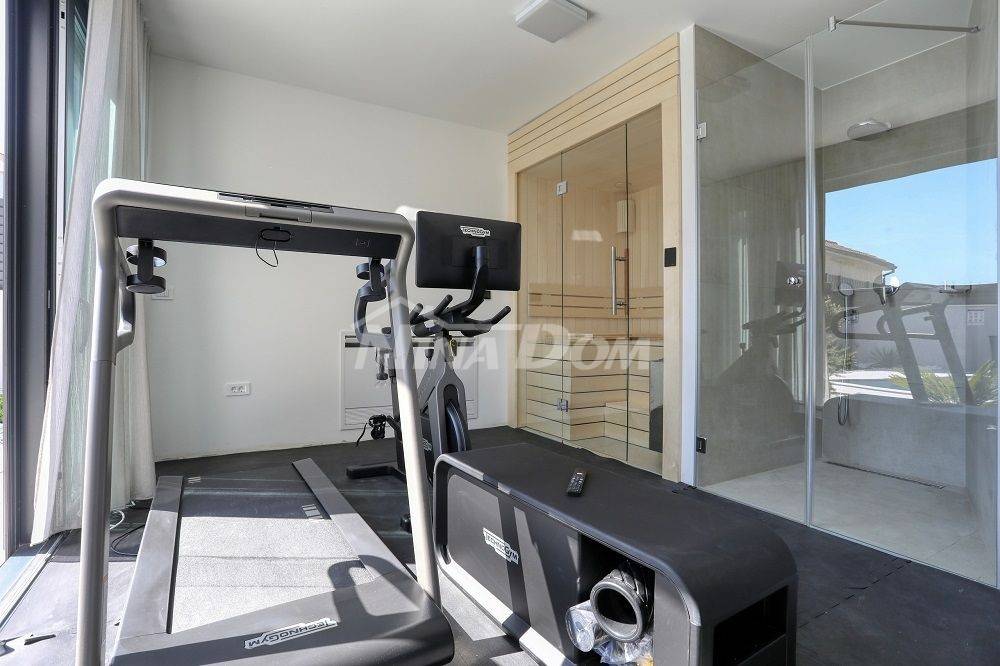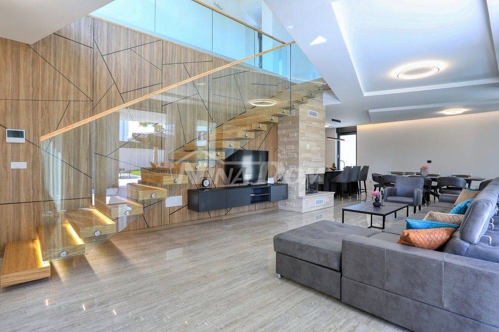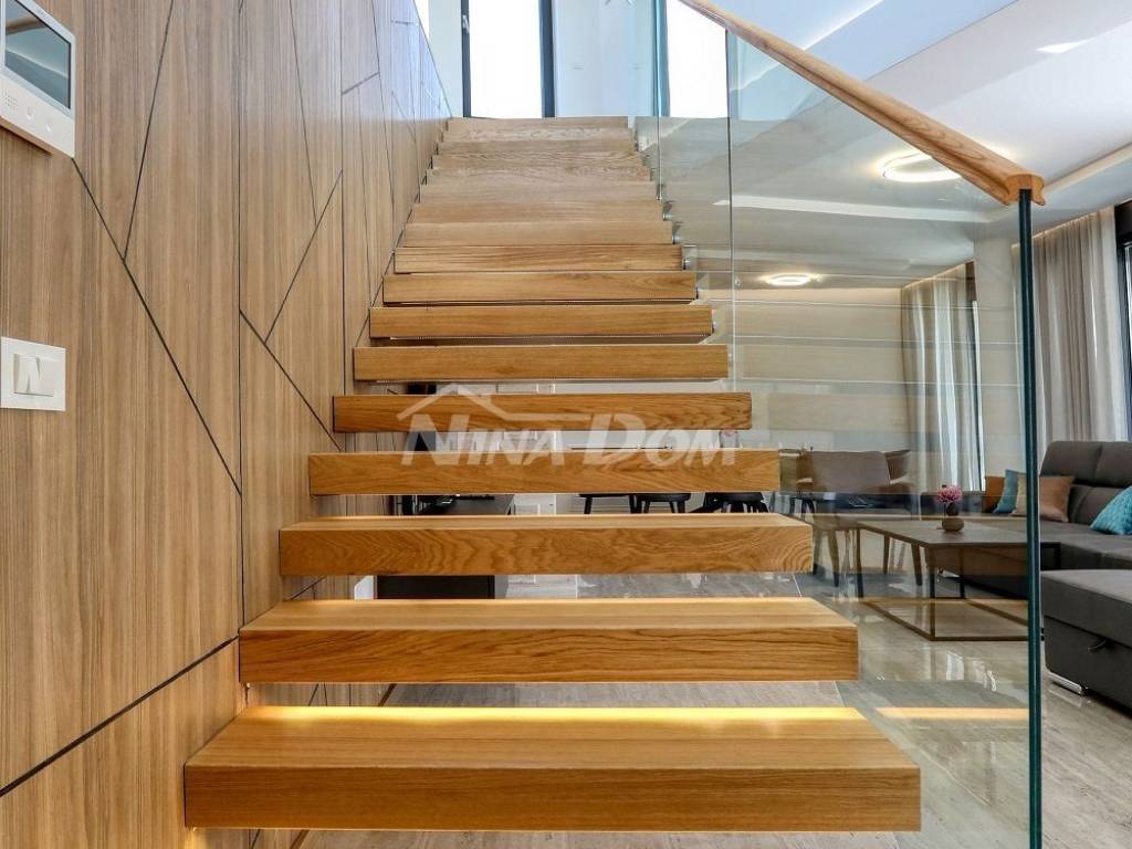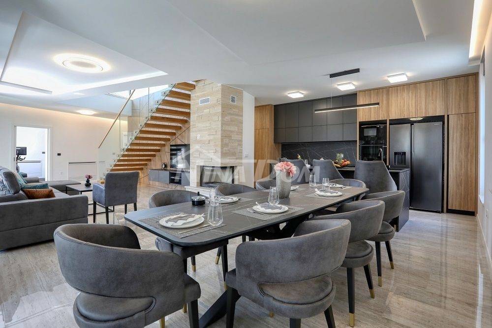 Prizemlje: ulaz/garderoba, wc, kotlovnica, praonica, hodnik, ostava, kuhinja, blagovaonica, dnevni boravak, welness,teretana, natkrivena terasa ukupne podne površine 191,38 m2 od čega korisne površine 148,07 m2.