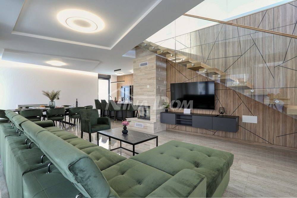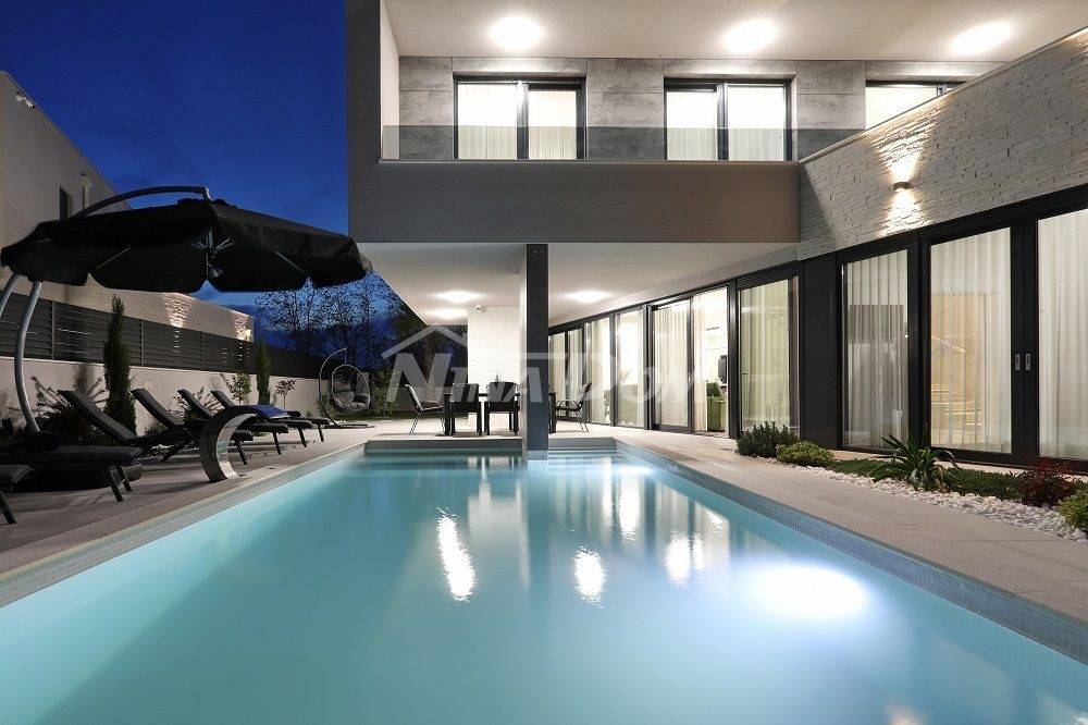 Okućnica uređena prostena 463 m2, u unutarnjem dijelu dvorišta smješten je bazen od 30 m2 s dizalicom topline i prostor za druženje s roštiljem.