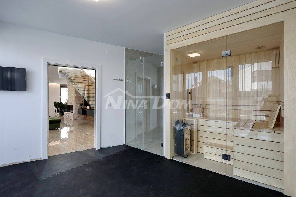 Prizemlje: ulaz/garderoba, wc, kotlovnica, praonica, hodnik, ostava, kuhinja, blagovaonica, dnevni boravak, welness,teretana, natkrivena terasa ukupne podne površine 191,38 m2 od čega korisne površine 148,07 m2.