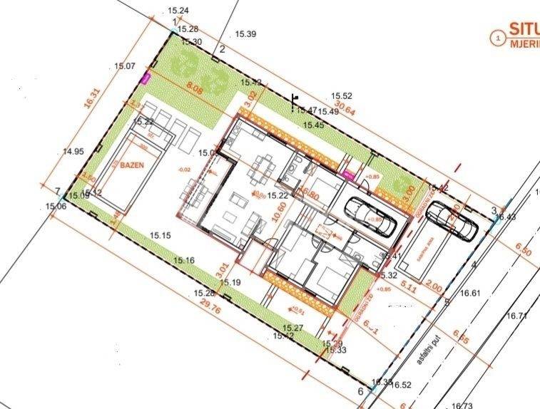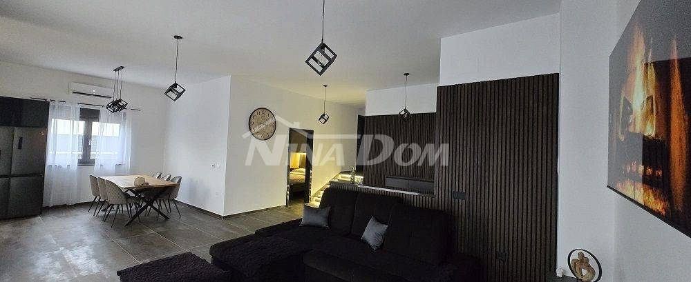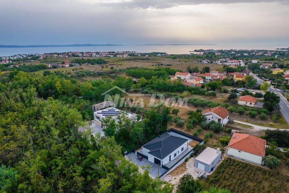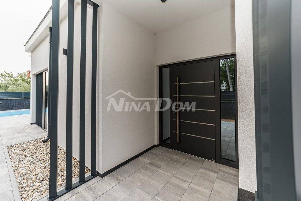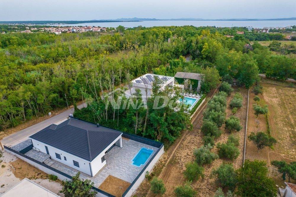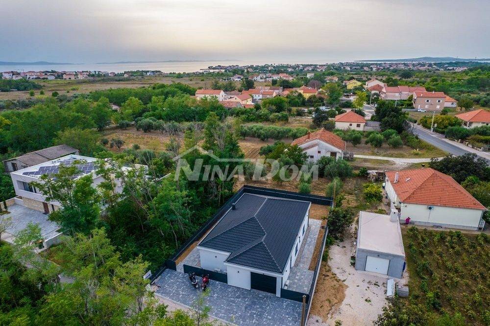 Novogradnja, prizemnica s bazenom. Izgrađena na 502 m2 zemljišta u mirnom dijelu Privlake okružena s zelenilom.