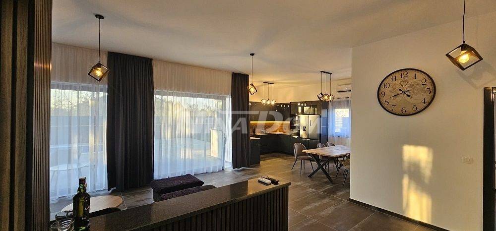 Sastoji se od garaže, kuhinje-blagovaonice, dnevnog boravka, tri spavaće sobe (glavna spavaća soba posjeduje kupaonicu), kupaona, terasa koja je povezana s vanjskim dijelom dvorišta i bazenom.