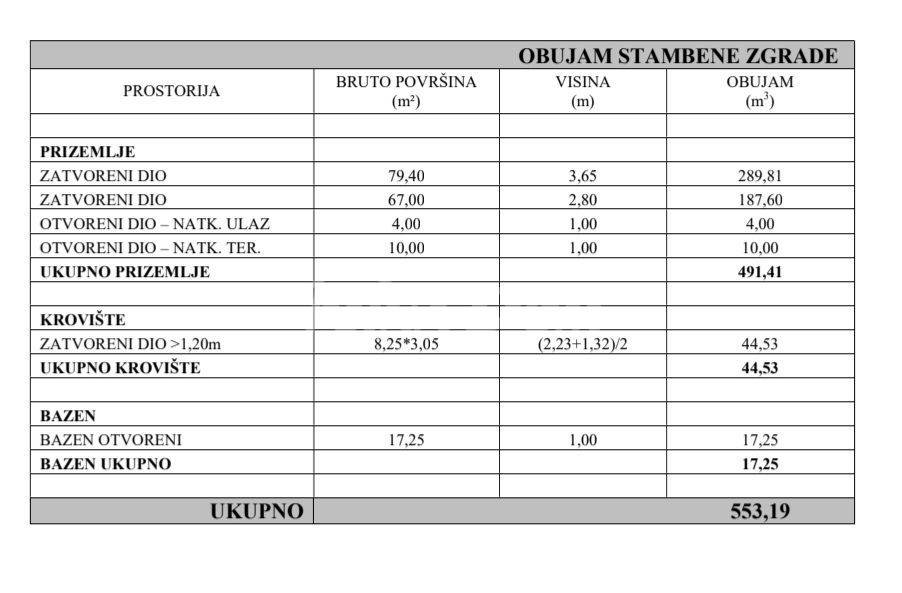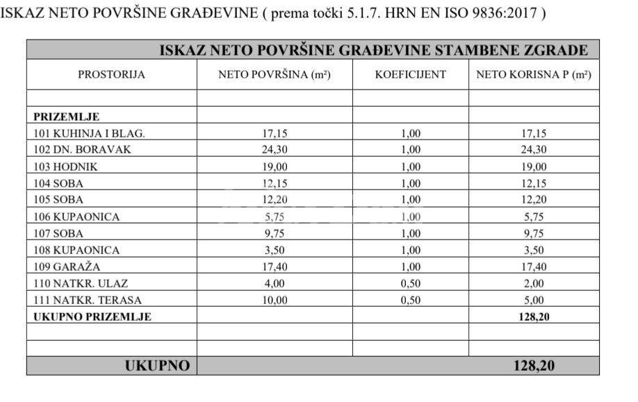 nekretnina je tlocrtne površine 128.20 m2 i bazen 17.25 m2.
