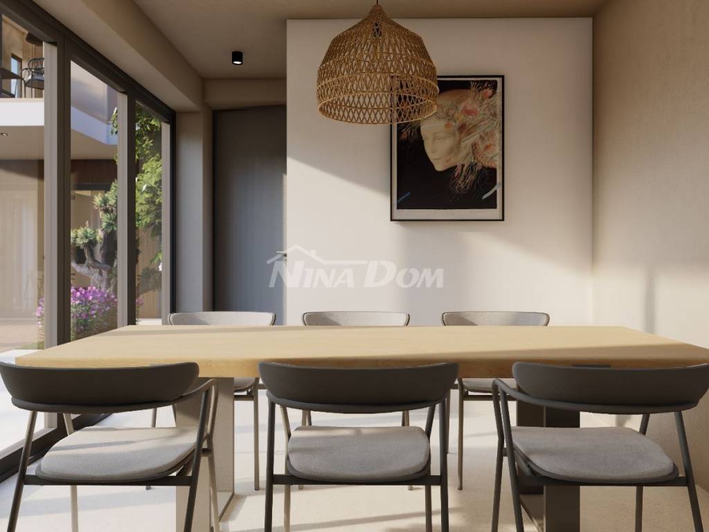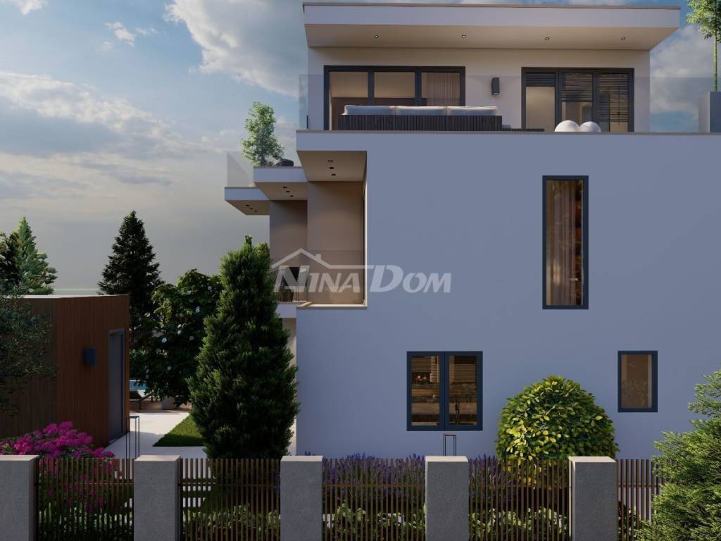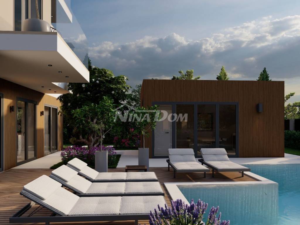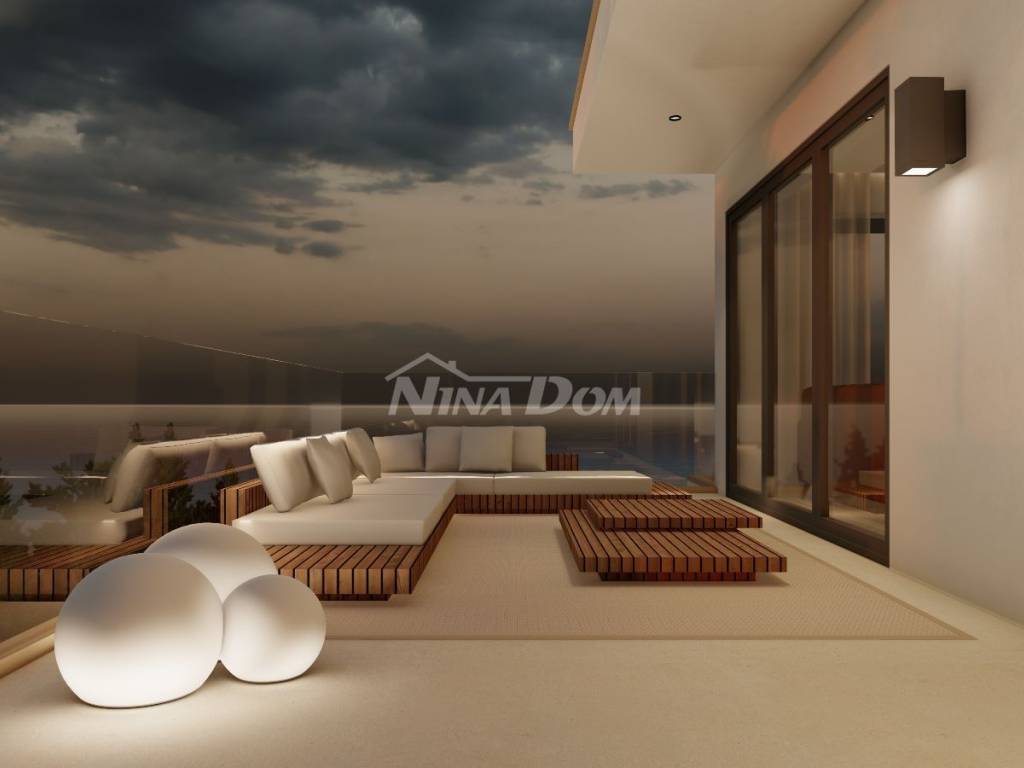 Prodaje se luksuzna villa u izgradnji,veličine 200 m2 .Nalazi se na atraktivnoj lokaciji, drugi red do mora u Sukošanu. Villa ima otvoren pogled na kompletan kanal i spoj Ugljana i Pašmana. Kuća se sastoji od prizemlja, prvog i drugog kata. U prizemlju kuće nalazi se vešeraj, kuhinja i blagovaona, dnevni boravak iz kojeg se izlazi na prostranu terasu i bazen, na prvom katu kuće nalaze se tri spavaće sobe sa svojim kupatilima, te također svaka soba ima svoju privatnu terasu s koje se pruža pogled na more. Na drugom katu kuće nalazi se ogromna spavaća soba sa svojim kupatilom, okružena je terasama, u sklopu nje nalazi se sauna, ostakljeni dnevni boravak iz kojeg se izlazi na veliku terasu sa nesmetanim panoramskim pogledom na morski arhipelag.Grijanje je izvedeno uz pomoć klima jedinica i podnog grijanja ( dizalice na topline ). U dvorištu kuće koje će krasit trava sa stablima mangolije, lavande i živica Photinija, nalazi se pomoćni objekat, ljetna kuhinja sa sanitarnim čvorom. Objekt se radi po najvećim sigurnosnim standardima.
