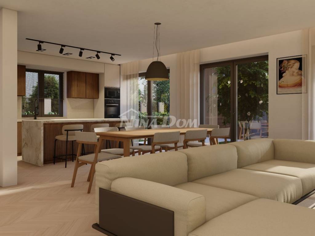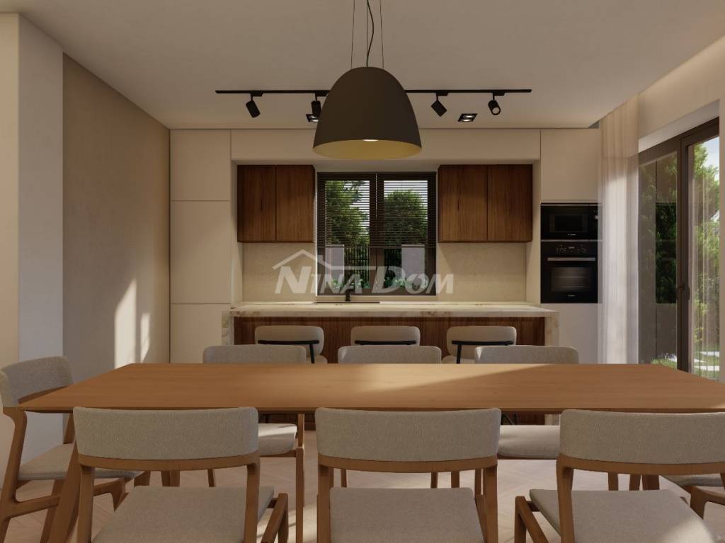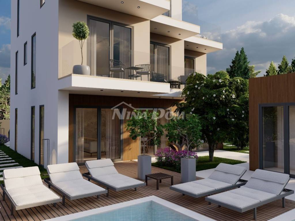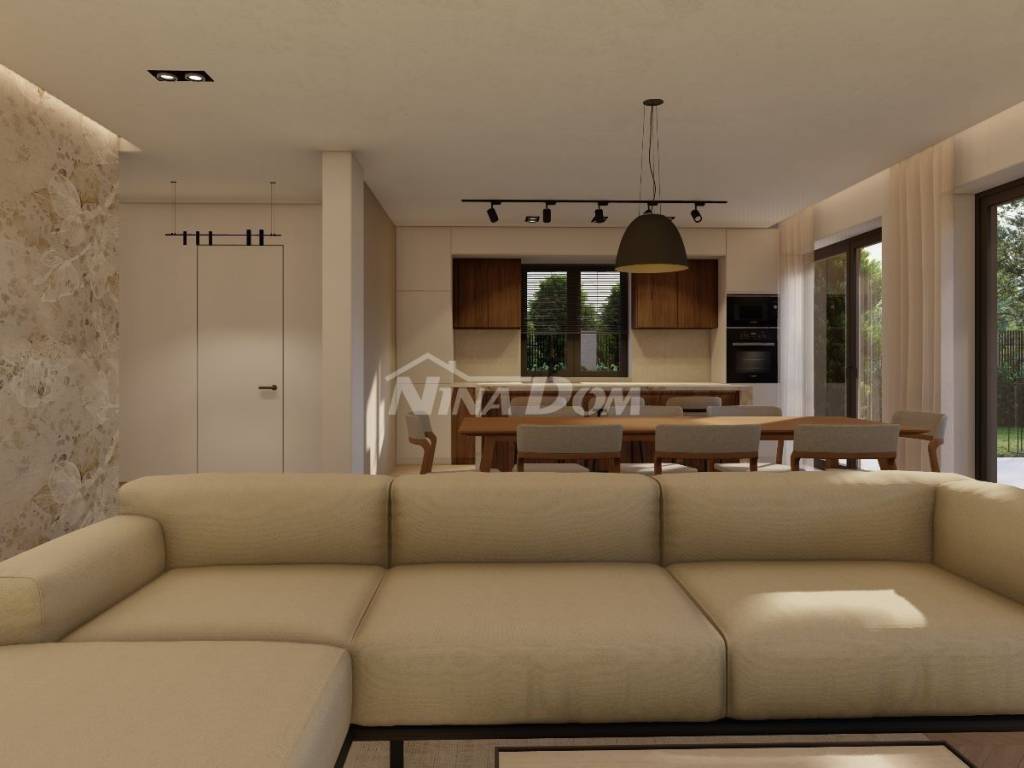 Prodaje se luksuzna villa u izgradnji,veličine 200 m2 .Nalazi se na atraktivnoj lokaciji, drugi red do mora u Sukošanu. Villa ima otvoren pogled na kompletan kanal i spoj Ugljana i Pašmana. Kuća se sastoji od prizemlja, prvog i drugog kata. U prizemlju kuće nalazi se vešeraj, kuhinja i blagovaona, dnevni boravak iz kojeg se izlazi na prostranu terasu i bazen, na prvom katu kuće nalaze se tri spavaće sobe sa svojim kupatilima, te također svaka soba ima svoju privatnu terasu s koje se pruža pogled na more. Na drugom katu kuće nalazi se ogromna spavaća soba sa svojim kupatilom, okružena je terasama, u sklopu nje nalazi se sauna, ostakljeni dnevni boravak iz kojeg se izlazi na veliku terasu sa nesmetanim panoramskim pogledom na morski arhipelag.Grijanje je izvedeno uz pomoć klima jedinica i podnog grijanja ( dizalice na topline ). U dvorištu kuće koje će krasit trava sa stablima mangolije, lavande i živica Photinija, nalazi se pomoćni objekat, ljetna kuhinja sa sanitarnim čvorom. Objekt se radi po najvećim sigurnosnim standardima.