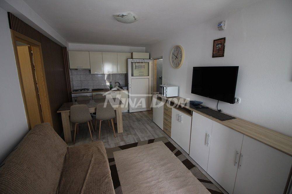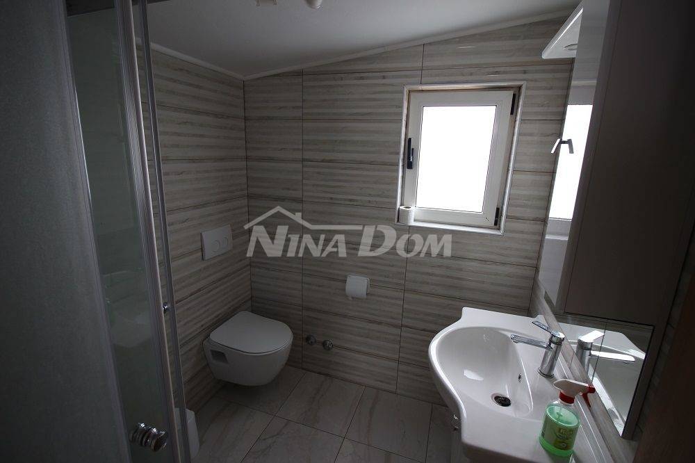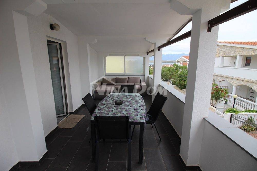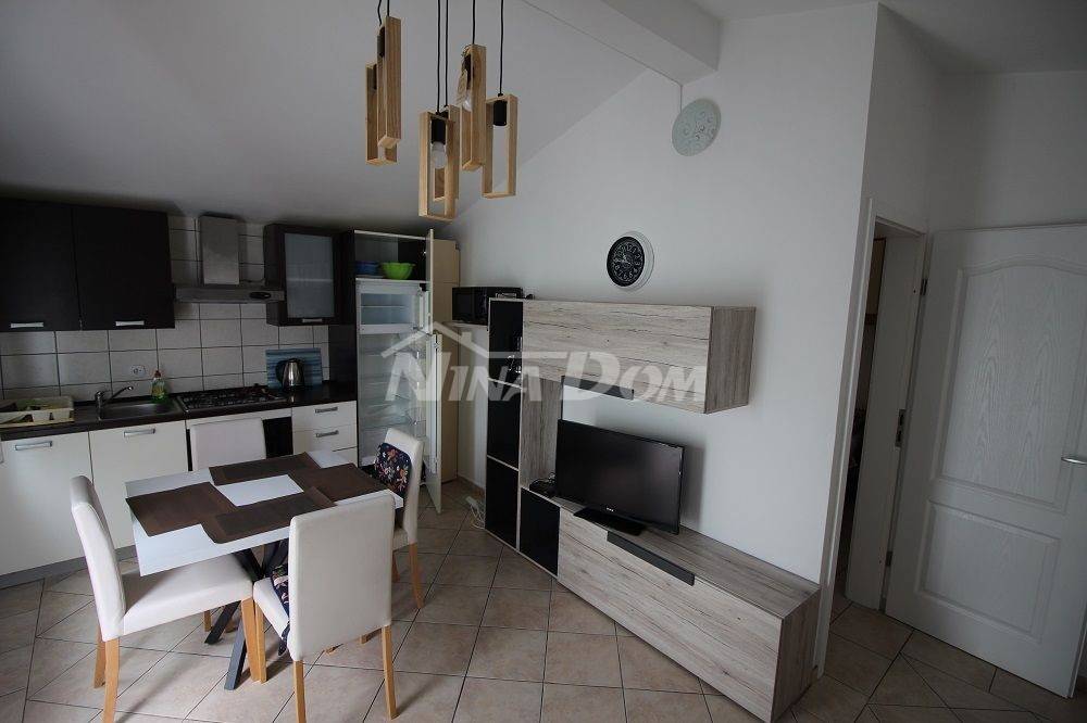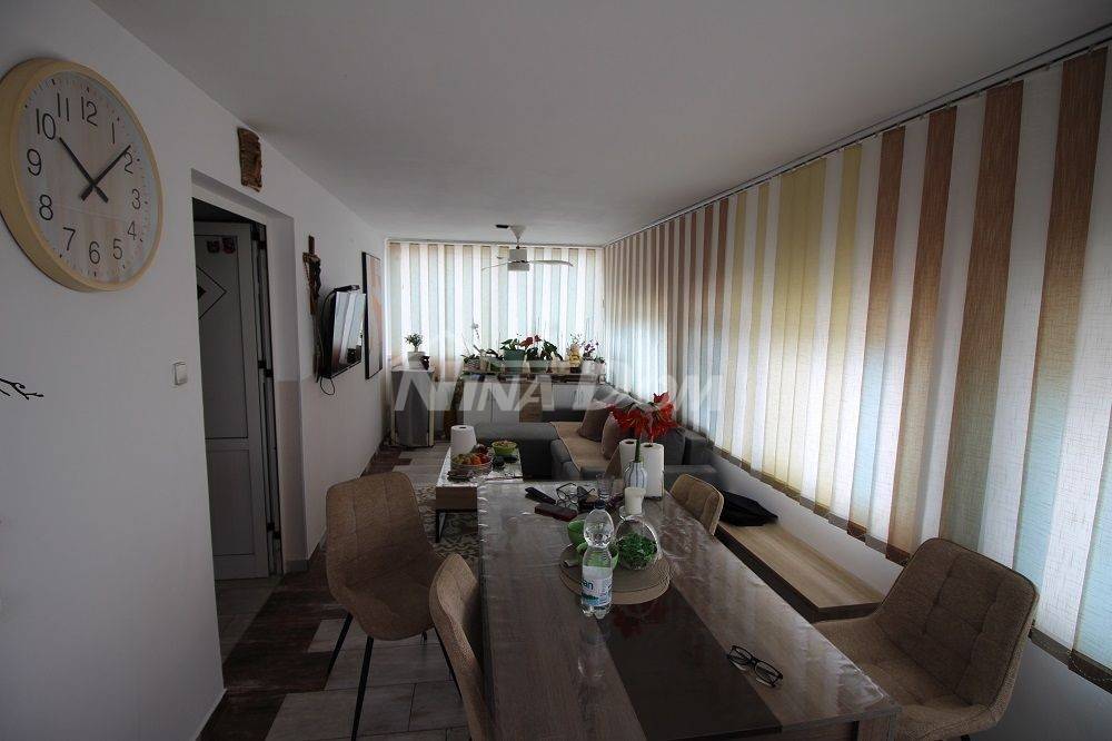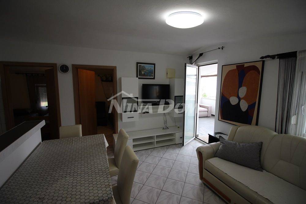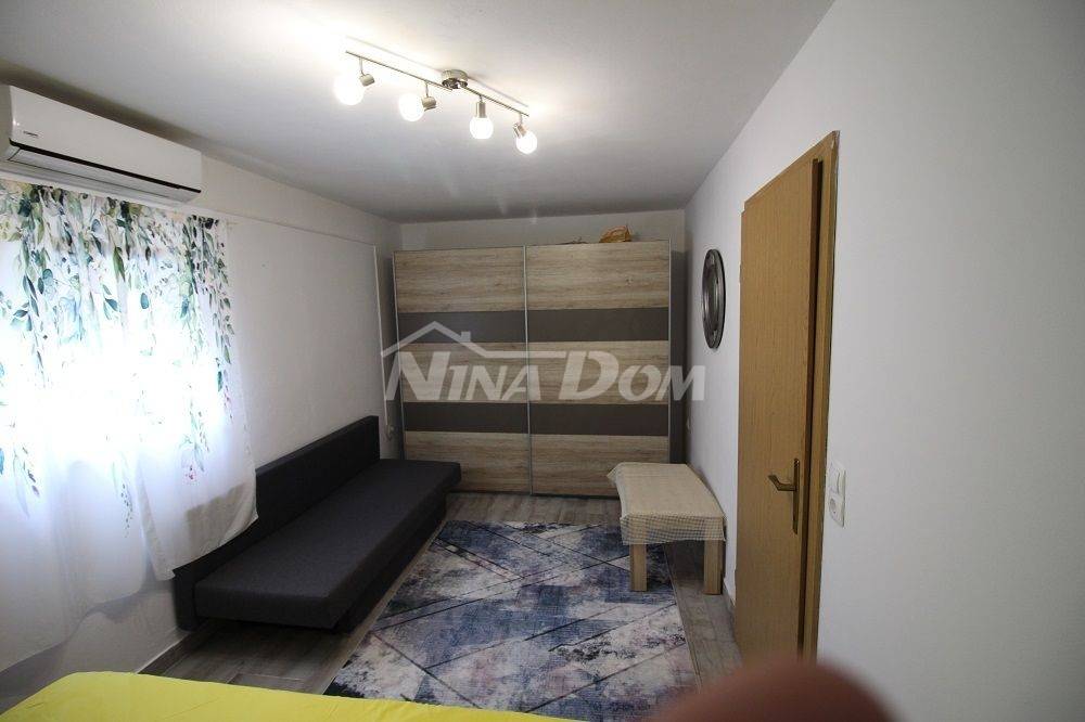 Samostojeća kuća na kat. Prizemlje: apartman koji ima dvije spavaće sobe, kuhinju s dnevnim boravkom, kupaonu i terasu s duplom garažom. Na katu apartman s dvije spavaće sobe, kuhinju s dnevnim boravkom, kupaonu i terasu i jedan apartman s jednom spavaćom sobom, kuhinja s dnevnim boravkom, kupaona i terasa. Nekretnina je lijepo uređena, kompletno opremljen i kao takva se prodaje. Okućnica uređena prostrana s dosta zelenila i sjenicom za ugodno druženje. Od mora je udaljena 300 metara.