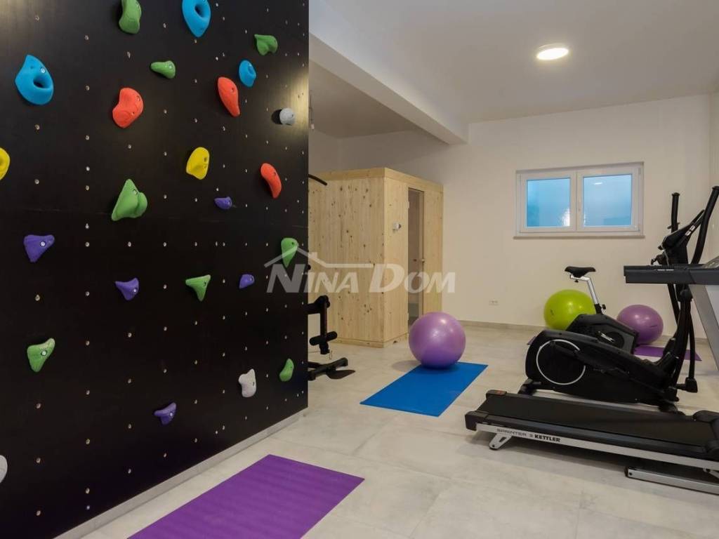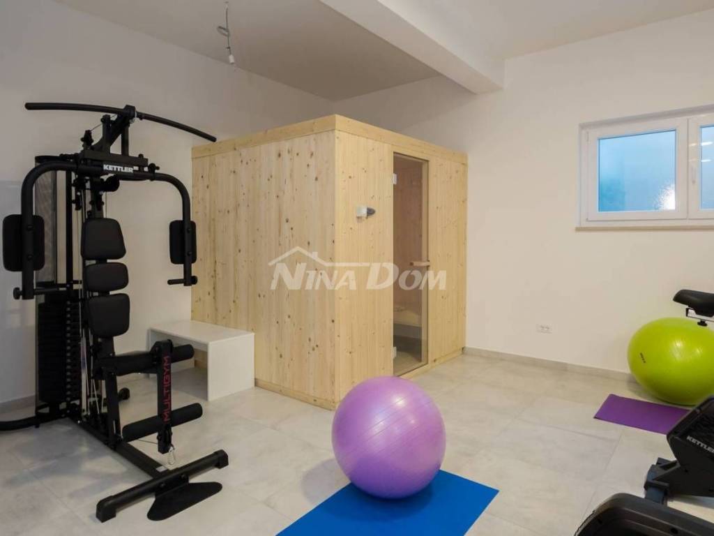 -U suterenu se nalaze strojarnica,skladišni prostor,soba za druženje,biljar,teretana,praonica rublja,sauna sa kupatilom odakle se izlazi na prostrano dvorište sa bazenom,ljetnom kuhinjom i maslenikom.