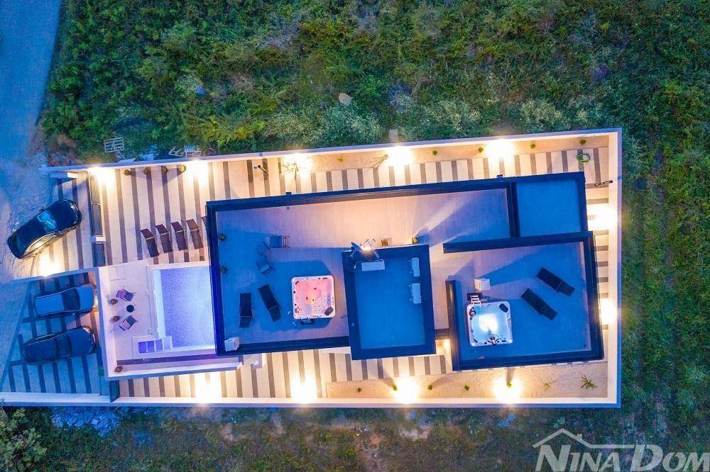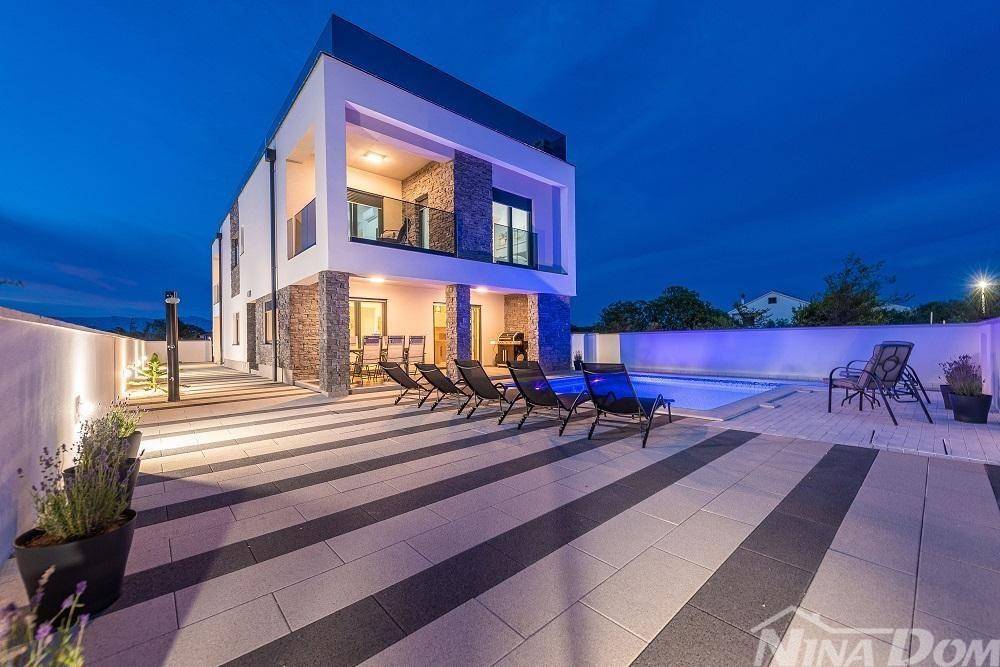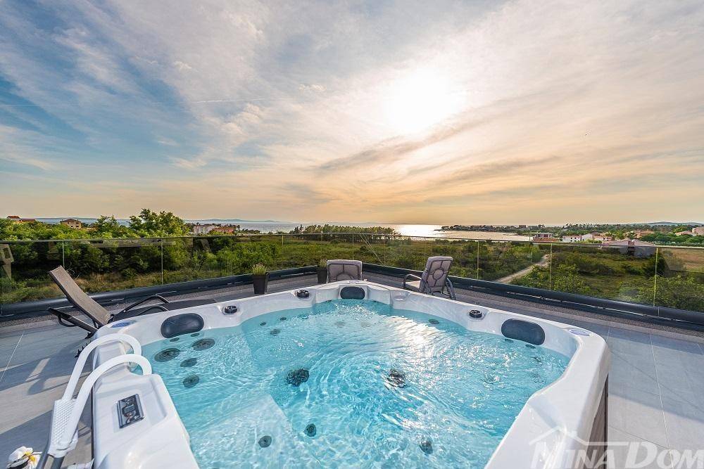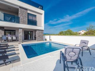 Villa for sale - NEW BUILDING in Privlaka with a total area of 240 m2. The villa is ideal for living or tourism. The property is fully furnished and as such ready for handover. It consists of 3 separate units (1 luxury apartment and two one-bedroom apartments) with swimming pool and parking spaces as well as a summer terrace on the building of 107 m2 with two jacuzzis. The property can be purchased as a whole or as separate units: The property has all the necessary documentation and will be obtained condominium upon completion. Ownership 1/1 and no encumbrances.